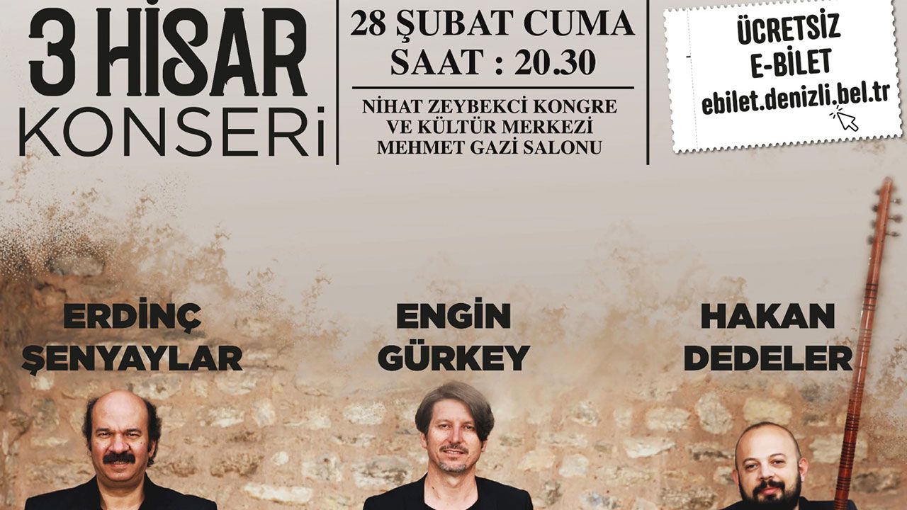 Denizli Haber - Denizli Büyükşehir Belediyesi, sanatseverleri eşsiz bir müzik deneyimine davet ediyor. Geleneksel ve modern müziği ustalıkla harmanlayan 3 Hisar grubu, 28 Şubat Cuma günü saat 20.30'da Nihat Zeybekci Kongre ve Kültür Merkezi Mehmet Gazi Salonu’nda sahne alacak. Müzik dünyasında önemli bir yere sahip olan Erdinç Şenyaylar, Engin Gürkey ve Hakan Dedeler, klasik gitar, vurmalı çalgılar ve bağlamanın muhteşem uyumu ile izleyicilere unutulmaz bir performans sunacak. Farklı müzik kültürlerini bir araya getiren sanatçılar, dinleyicilere hem duygusal hem de coşkulu anlar yaşatacak. Denizli Büyükşehir Belediyesi tarafından düzenlenen bu özel konser, sanatseverlere ücretsiz olarak sunulurken katılım için ebillet.denizli.bel.tr adresinden bilet temin edilebilecek.