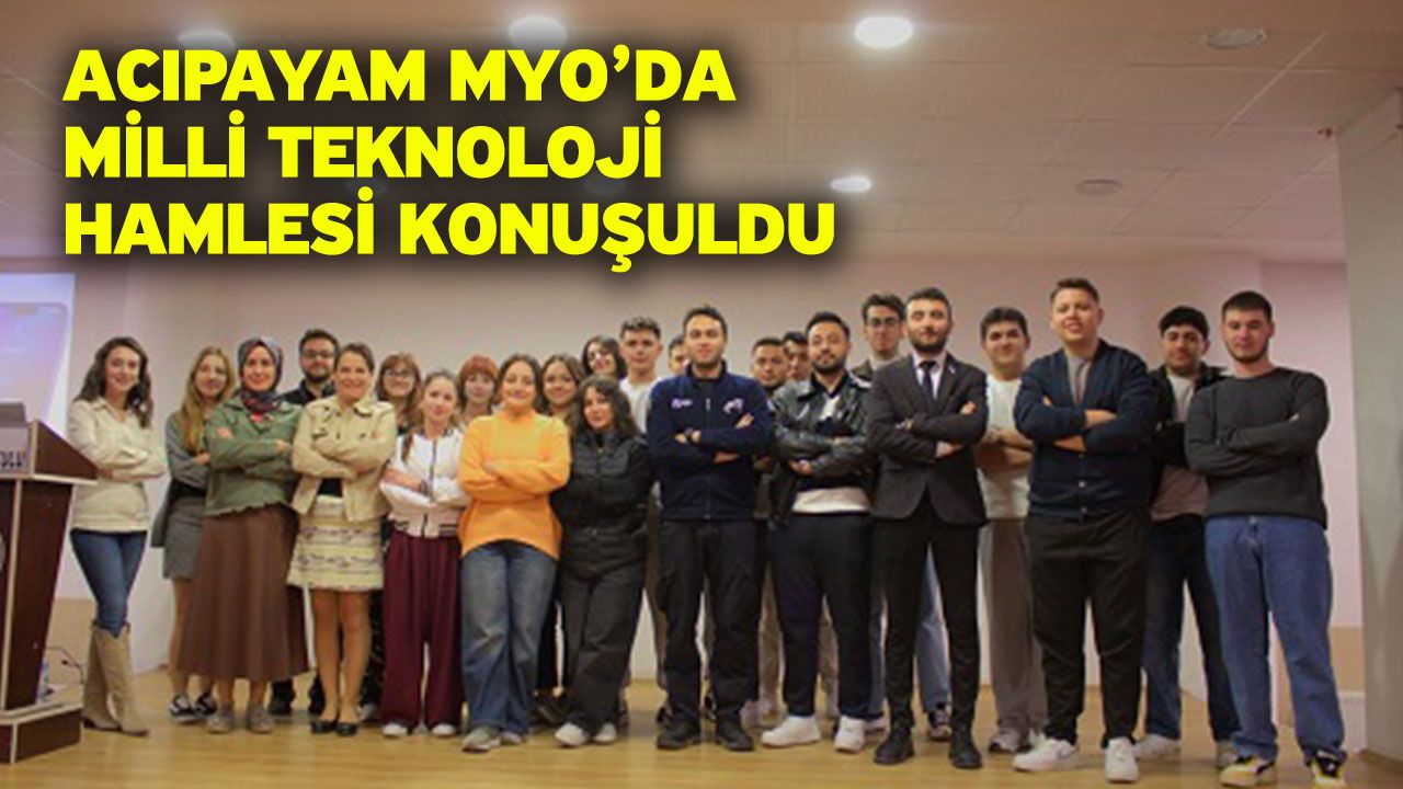 Denizli Haber - Emre Verim, Yüksekokul akademik, idari personeline ve öğrencilerine 16 EkimPerşembe günü Acıpayam MYO Konferans Salonu’nda Milli Teknoloji Hamlesi konulu bir konferans verdi. Verim, Türkiye’nin “Yüksek Teknoloji ve İnovasyon, Dijital Dönüşüm ve Sanayi Hamlesi, Girişimcilik, Beşerî Sermaye ve Altyapı bileşenlerinden oluşan Milli Teknoloji Hamlesine” öncülük eden bir oluşum olarak T3 Vakfı’nın projeleri, faaliyetleri, eğitim programları, bursları vb. konularda bilgi verdi. T3 Vakfı’nın teknoloji odaklı faaliyet yürüten tek vakıf olduğunun altını çizen Emre Verim, bu oluşumun fikri ve uygulamalı yarışmalarıyla, Teknofest gibi marka olmuş etkinleriyle, eğitimi destekleyen burslarıyla, geliştirdikleri teknolojilerle fark yarattığını da vurguladı. T3 Vakfı’nın lise ve üniversitelerde kurulan yarışma takımlarını desteklediğini, bu takımların amatör bir öğrenci topluluğundan nasıl Türksat’a roket üretir hale gelen uzman ekiplere dönüştüğünün de öyküsünü anlattı. Ön lisans programı okuyan gençlerin bu oluşum içinde neler yapabileceklerini ifade etti.