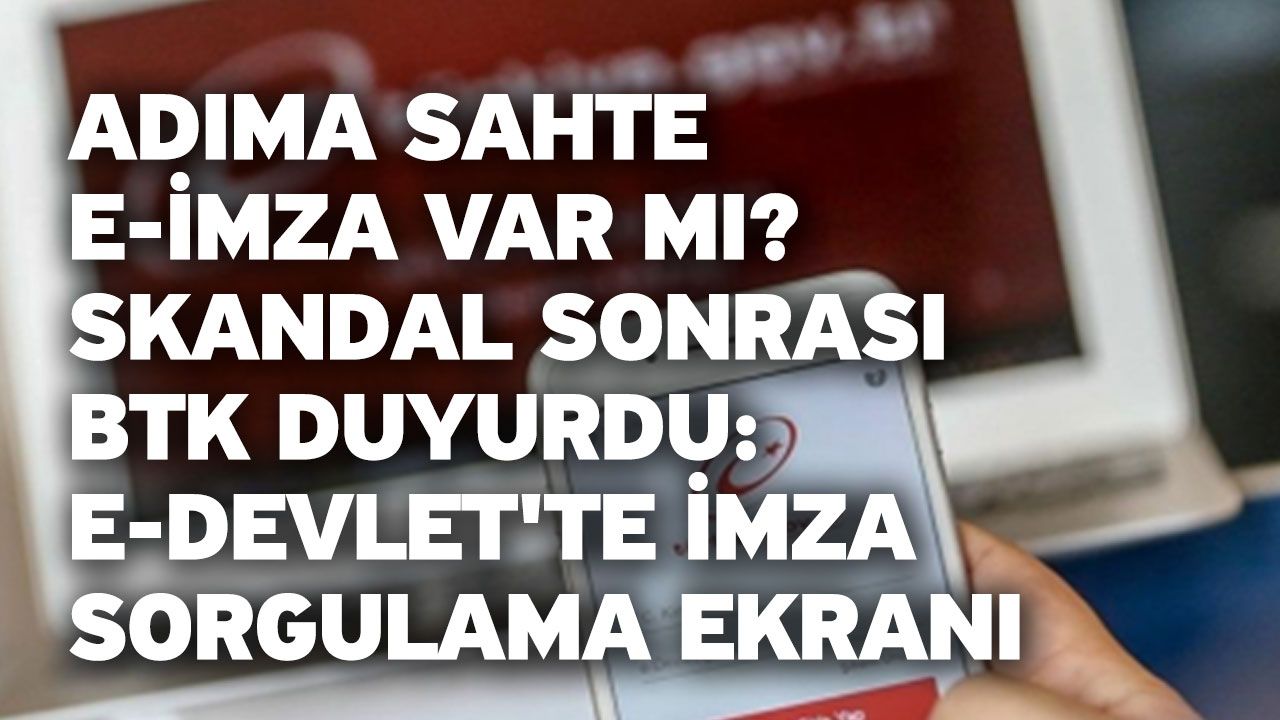 Sahte diploma ile patlak veren skandalın boyutu büyük endişe yarattı. Sahte kimlik kartı, sahte ehliyet ve yüzlerce sahte belgenin kamouyuna yansımasıyla birlikte vatandaşlar "Adıma sahte e-imza var mı?" sorusunu sormaya başladı. Herkes sahte e-imza endişesi yaşarken, beklenen açıklama ise Bilgi Teknolojileri ve İletişim Kurumu'ndan (BTK) geldi. E-devlet üzerinden Nitelikli Elektronik Sertifika Sorgulama araması yaparak, sizle ilgili sahte e-imza olup olmadığını kontrol edebilirsiniz. İşte detaylar...