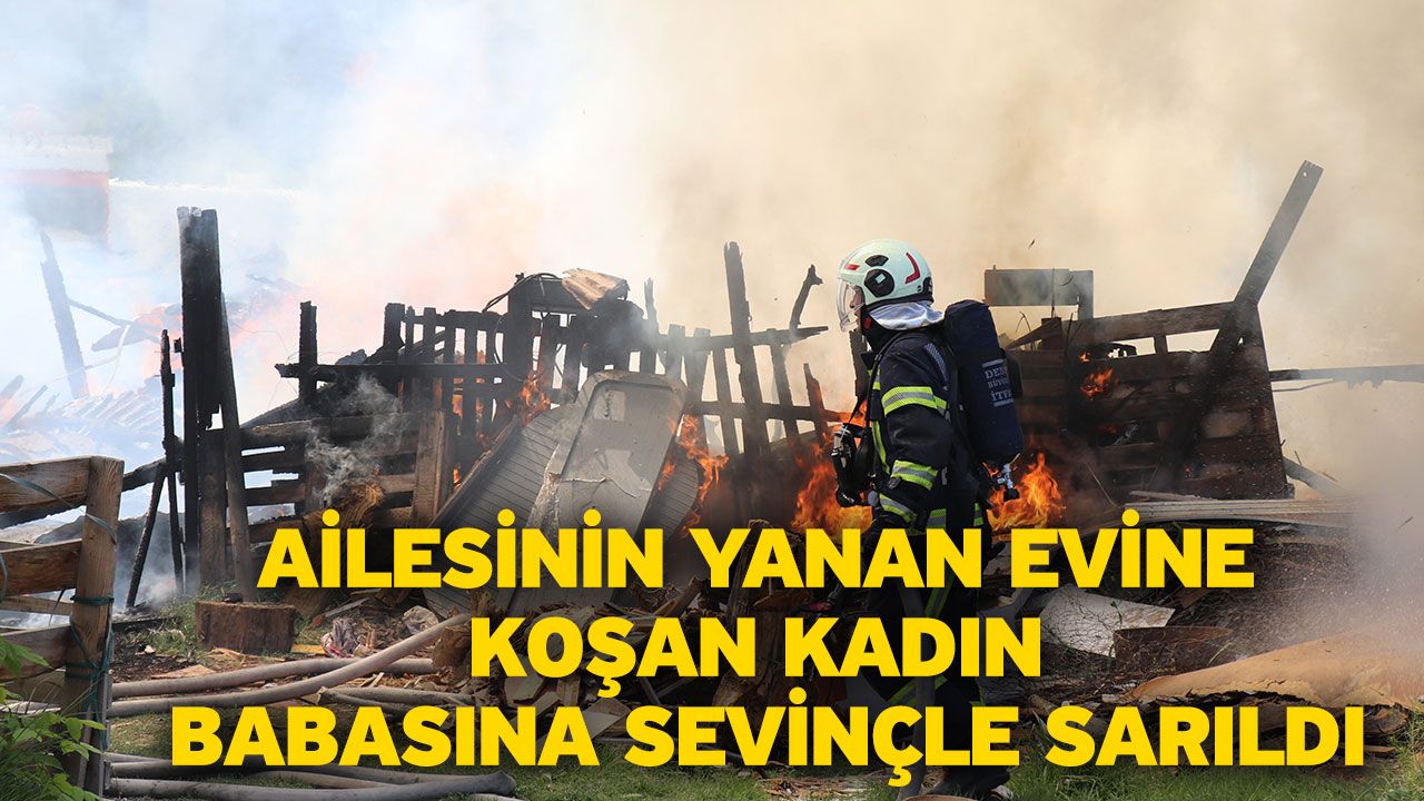 Ailesinin yanan evine koşan kadın babasına sevinçle sarıldı