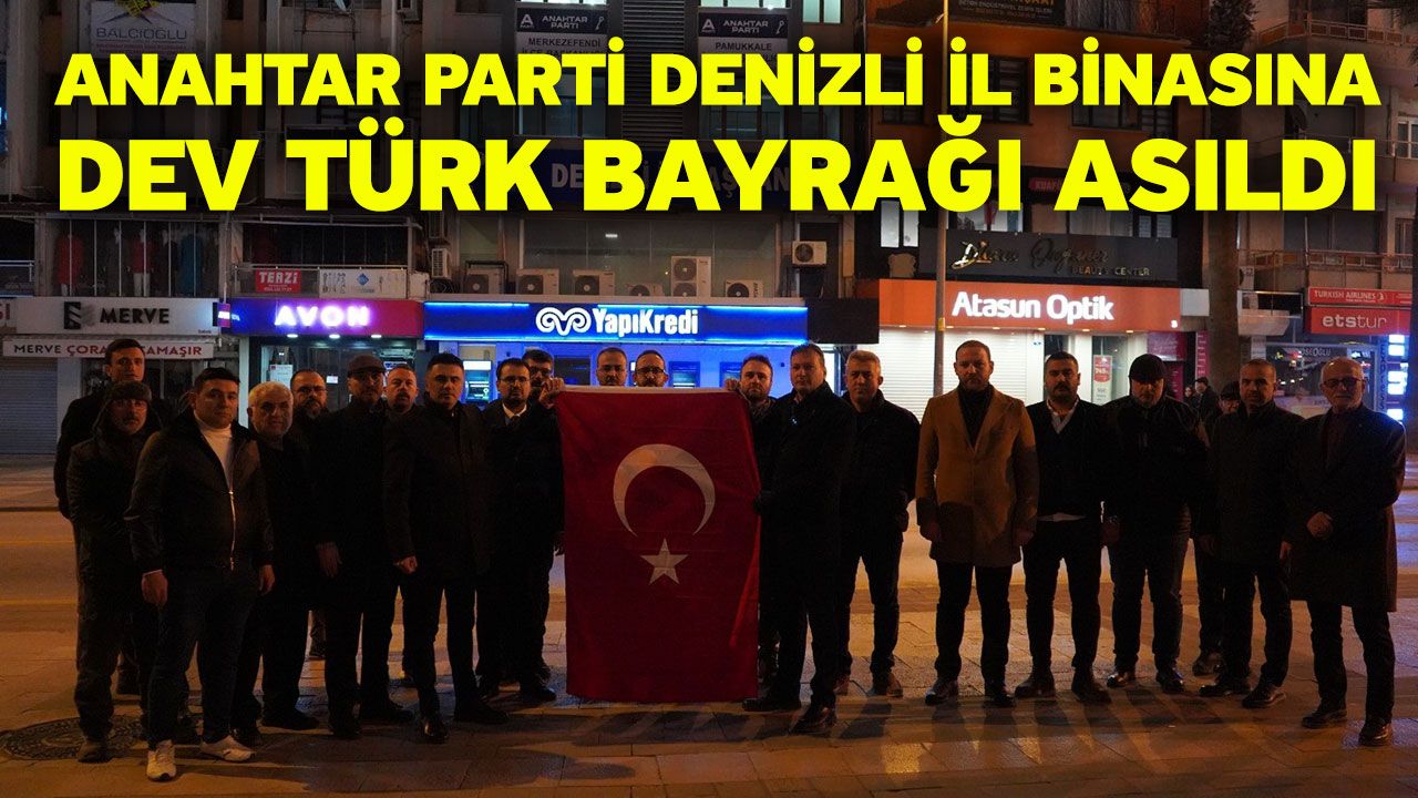 Anahtar Parti Denizli il binasına dev Türk bayrağı asıldı