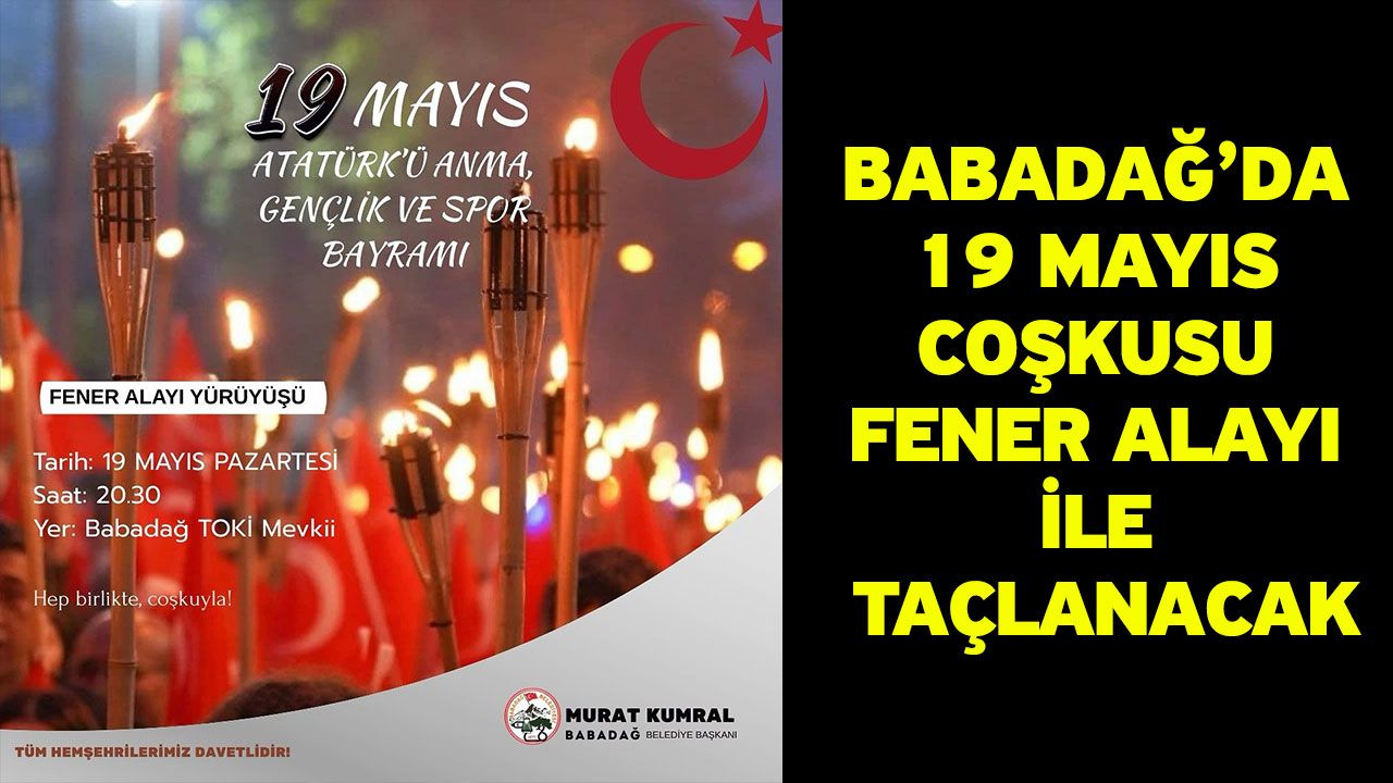 Bağımsızlık ruhunu yaşatmak ve gençliğin dinamizmini bir araya getirmek amacıyla organize edilen Fener Alayı, 19 Mayıs 2025 Pazartesi günü saat 20.30’da Babadağ TOKİ Konutları Mevkii’nden başlayacak.