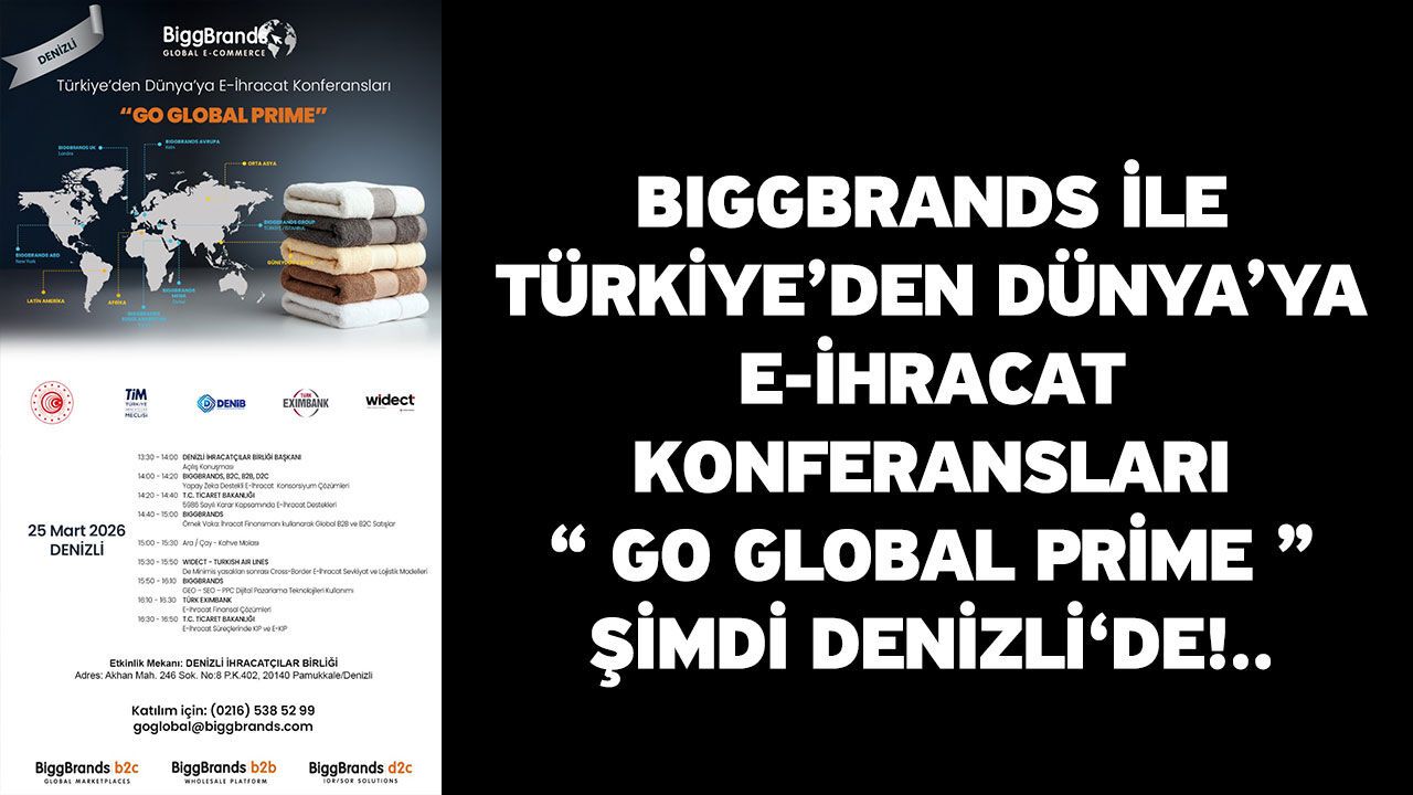 25 Mart 2026 Çarşamba günü, Denizli İhracatçılar Birliği'nde düzenlenecek konferansta BIGGBRANDS yetkilileri; Türk markalarının küresel pazarlara erişimini hızlandıran çok kanallı B2C, B2B ve D2C iş modelleri, global lojistik çözümleri, yapay zekâ destekli büyüme stratejileri ve finansal çözüm modelleri gibi detayları Denizli'nin üretici iş insanları ile paylaşacak.