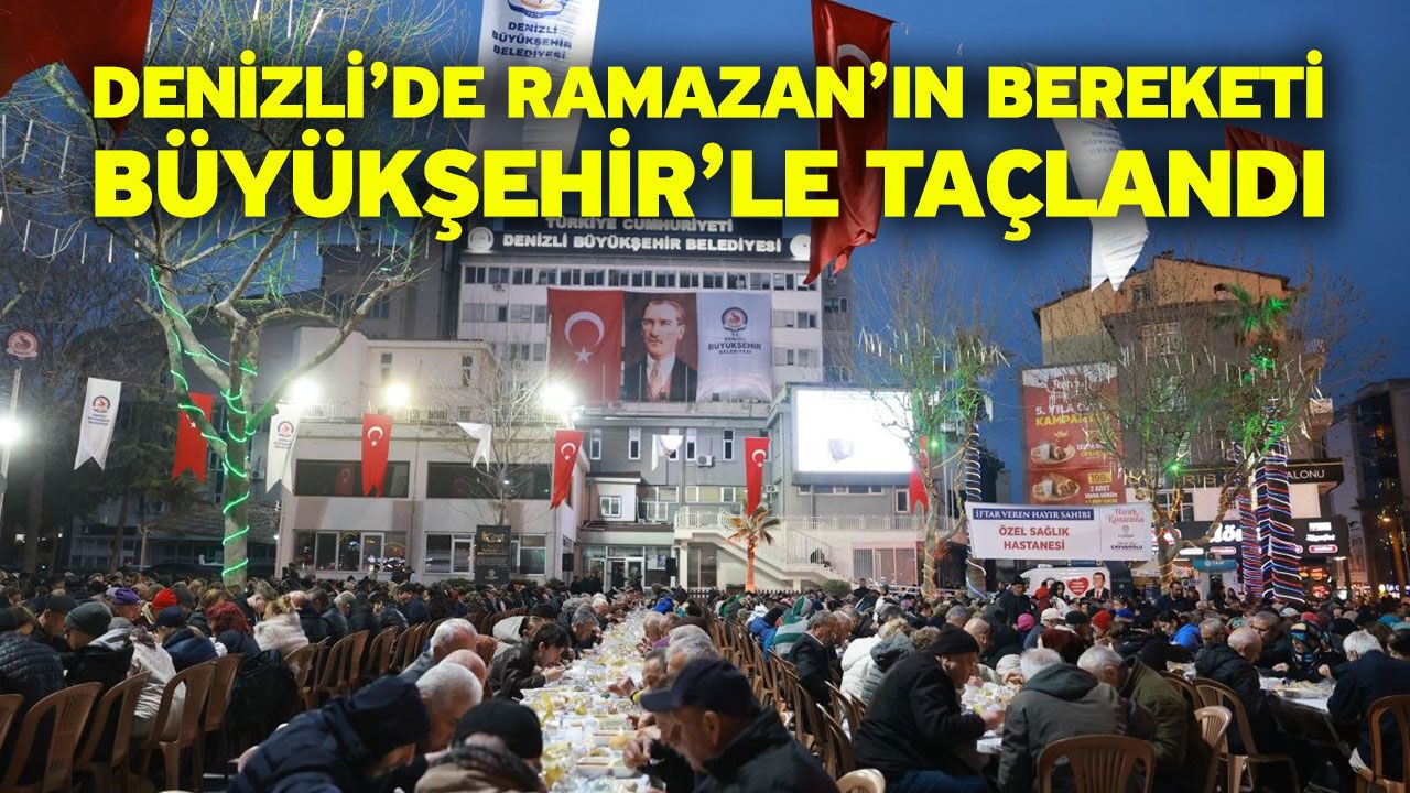 Denizli Haber - Denizli Büyükşehir Belediyesi, Ramazan ayının manevi iklimini kentin dört bir yanına taşıyarak 30 gün boyunca süren iftar programlarını görkemli bir finalle tamamladı. Her gün farklı bir ilçede, kent merkezinde ise her gün farklı bir mahallede binlerce vatandaşı aynı sofrada buluşturan Büyükşehir Belediyesi, Ramazan’ın son iftarını Arefe gününde, kentin kalbi Delikliçınar Meydanı’nda gerçekleştirdi. Özel Sağlık Hastanesi’nin katkılarıyla düzenlenen organizasyona Denizlililer yoğun katılım gösterdi. Vatandaşlar Ramazan ayının bereketini aynı sofrada paylaştı.