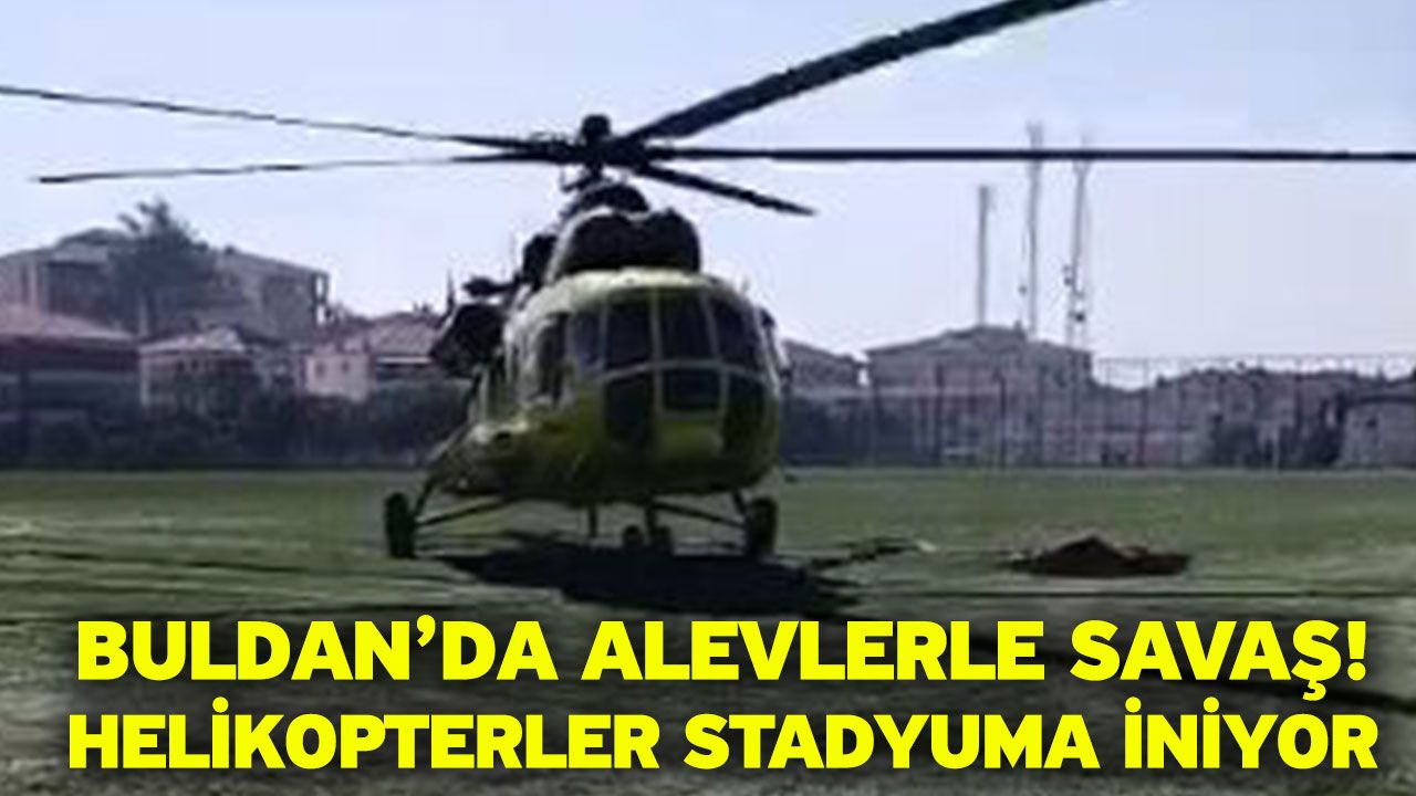 Alevlere su atan helikopterler, yakıt ikmali için Buldan İlçe Stadyumu’nu kullanıyor. İkmalin ardından yeniden yangın bölgesine hareket eden helikopterler söndürme çalışmalarına destek veriyor.