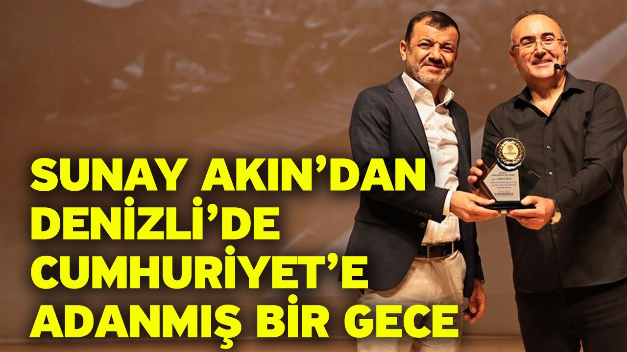 Denizli Haber - Denizli Büyükşehir Belediyesi Kongre ve Kültür Merkezi’nde düzenlenen “Cumhuriyete Giden Yol” adlı söyleşi Denizlililere unutulmaz bir gece yaşattı. Programa Denizli Büyükşehir Belediye Başkanı Bülent Nuri Çavuşoğlu, Başkanvekili Ali Marım, Kültür ve Sosyal İşler Dairesi Başkanı Mehmet Selçuk ve binlerce vatandaş katıldı. Sunay Akın, “Cumhuriyete Giden Yol” adlı tek kişilik gösterisinde Cumhuriyet’in düşünsel temellerini ve Gazi Mustafa Kemal Atatürk’ün liderliğinde verilen bağımsızlık savaşını etkileyici öykülerle sahneye taşıdı. Tarihi olayları sanatsal bir anlatımla birleştiren Akın, kimi zaman seyircileri kahkahaya boğarken, kimi zaman da duygu dolu anlar yaşattı. “Türkiye Cumhuriyeti’nin temeli kültürdür” diyen Sunay Akın, Atatürk’ün öncülüğünde kurulan Cumhuriyet’in bilimsel ve kültürel temellerini tanıttı. Yaşadığı dönemin en büyük bilim insanı olarak kabul edilen gökbilimci Takiyüddün Efendi’nin kurduğu rasathanenin yıkılmasıyla kesintiye uğrayan sürecin Cumhuriyet’in ilk gökbilimcisi Nüzhet Gökdoğan’a ve ilk jeolog Prof. Dr. Nuriye Pınar’a uzanan çarpıcı örnekleriyle anlatan Sunay Akın, Denizlililere duygu dolu bir akşam yaşattı.