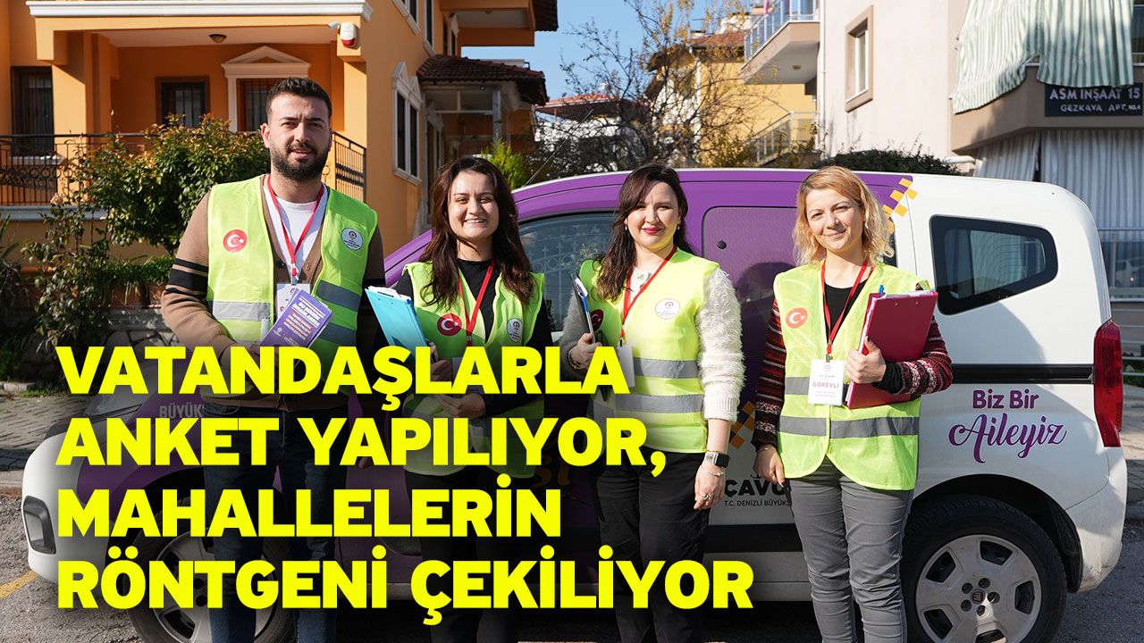 Altyapı, üstyapı, çevre temizliği, yeşil alanlar, sokak hayvanları, trafik yoğunluğu, toplu taşıma ve sosyal yardım gibi uygulamaların değerlendirildiği vatandaş memnuniyet anketinin de yer aldığı projede Denizli Büyükşehir Belediyesinden hangi sorunlara öncelik vermesi gerektiği de soruluyor. Vatandaşlarla örnekleme yöntemi ile yapılan anketlerle mahallelerin tek tek röntgeni çekilirken, projede halkın öncelikli ihtiyaçları ilk ağızdan tespit ediliyor. Sahada tespit edilen veriler ise istatistik uzmanları tarafından özel bir programda toplanarak bölgenin veri analizi yapılıyor, mahallenin sosyal dokusu belirleniyor. Denizli kent merkezinde yürütülen projede mahalle muhtarlarıyla da işbirliği yapılırken, çalışmadan elde edilen bilimsel verilerin Büyükşehir Belediyesinin yatırım planlarına rehber olacağına dikkat çekiliyor.
