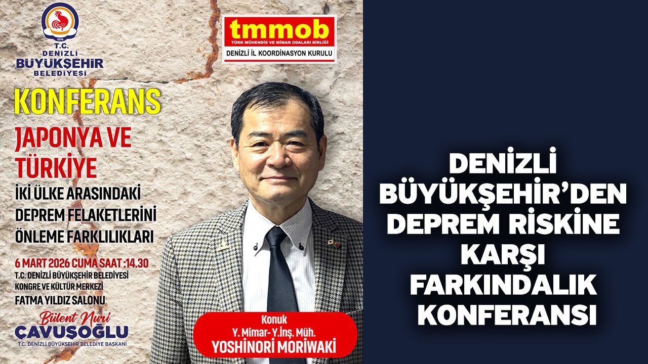 Denizli Haber - 1–7 Mart Deprem Haftası kapsamında afet bilincini artırmak ve deprem risklerine karşı toplumsal farkındalığı güçlendirmek amacıyla Denizli’de önemli bir konferans düzenleniyor. Denizli Büyükşehir Belediyesi Afet İşleri ve Risk Yönetimi Dairesi Başkanlığı koordinasyonunda düzenlenecek konferansta, Japonya’nın deprem yönetimi ve afetlere hazırlık konusundaki deneyimleri ile Türkiye’deki uygulamalar karşılaştırmalı olarak ele alınacak. Deprem gerçeğiyle yaşayan iki ülkenin afetlere karşı geliştirdiği yöntemler, alınan önlemler ve toplumsal hazırlık süreçleri katılımcılarla paylaşılacak. Konferans, 6 Mart 2026 Cuma günü saat 14.30’da Denizli Büyükşehir Belediyesi Kongre ve Kültür Merkezi Fatma Yıldız Salonu’nda gerçekleştirilecek. Deprem Haftası kapsamında düzenlenen etkinliğe tüm vatandaşlar davet edildi.