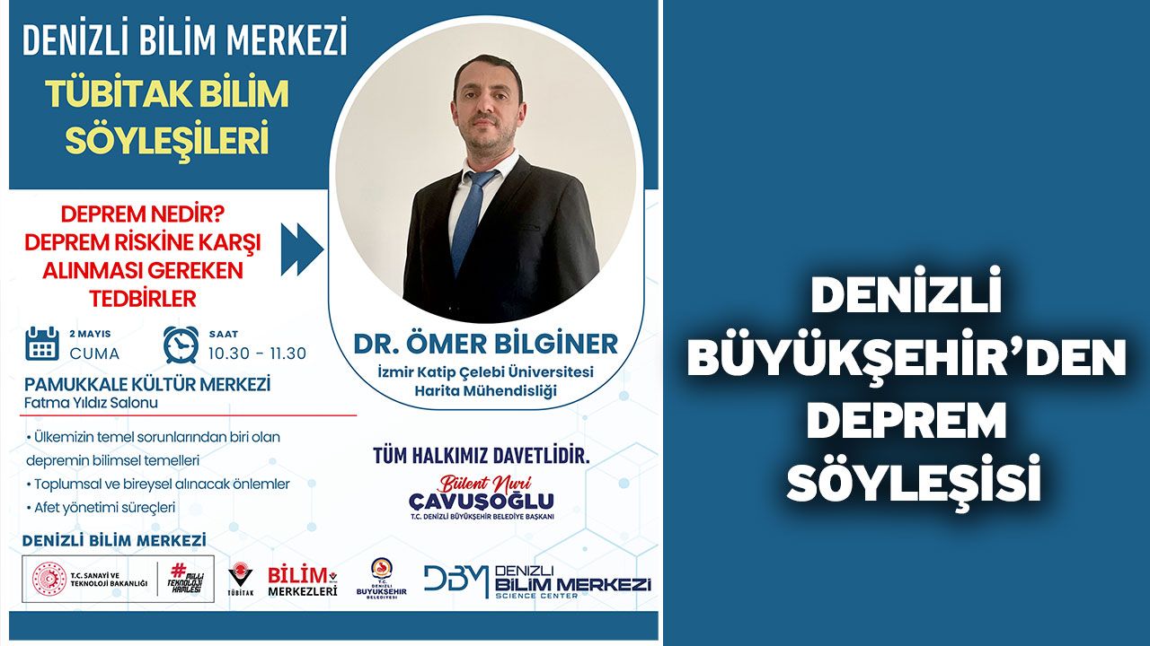 Denizli haber - Denizli Büyükşehir Belediyesi bünyesinde çalışmalarına devam eden Denizli Bilim Merkezi’nin ev sahipliğinde düzenlenecek TÜBİTAK Bilim Söyleşilerinde, deprem gerçeği ve afet yönetimi konuları masaya yatırılacak. 2 Mayıs Cuma günü saat 10.30’da Pamukkale Kültür Merkezi Fatma Yıldız Salonu’nda gerçekleşecek etkinlikte, konuşmacı olarak İzmir Katip Çelebi Üniversitesi Öğretim Üyesi Dr. Ömer Bilginer yer alacak. “Deprem Nedir? Deprem Riskine Karşı Alınması Gereken Tedbirler” başlıklı söyleşide, ülkemizin sıkça karşı karşıya kaldığı depremler bilimsel temelleriyle ele alınacak. Katılımcılar, doğal afetlerin etkileri ve bu afetlere karşı bireysel ve toplumsal düzeyde nasıl önlemler alınabileceği konusunda kapsamlı bilgi sahibi olacak. Söyleşi, hem afet bilincini artırmayı hem de toplumda farkındalık oluşturmayı amaçlıyor. Etkinliğe tüm vatandaşların davetli olduğu belirtildi.