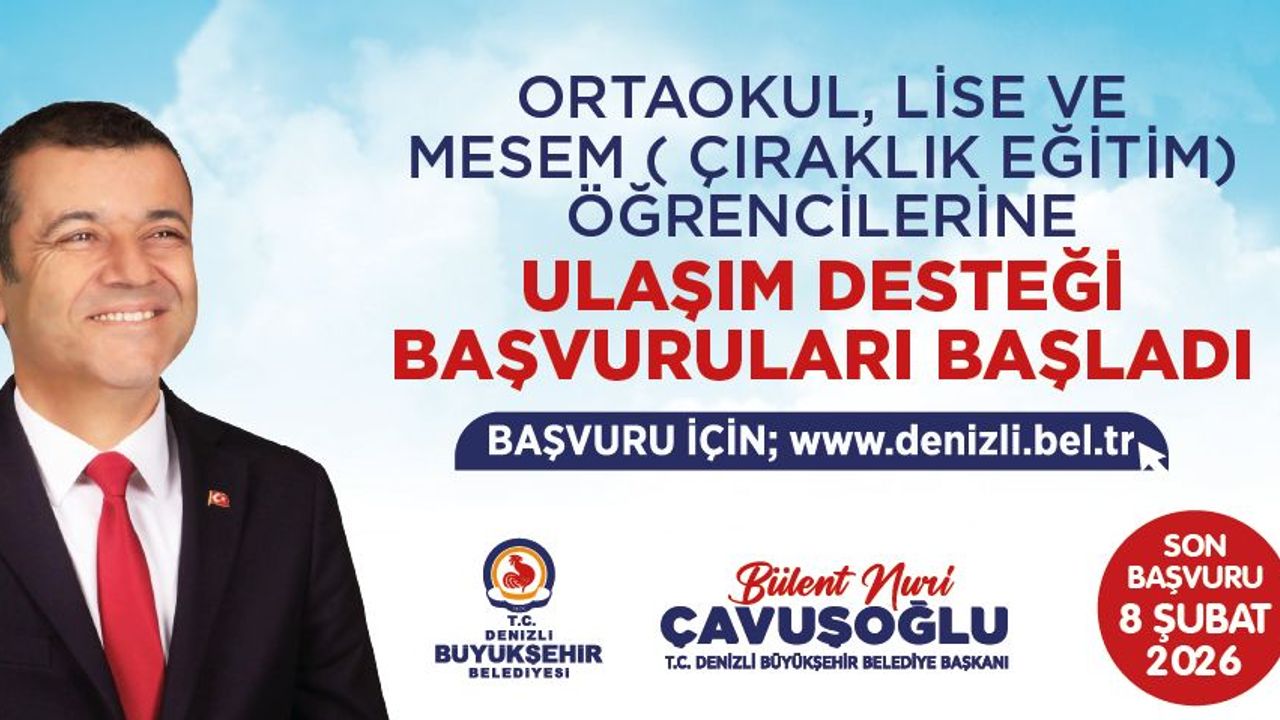Denizli Haber - Denizli’de uyguladığı sosyal belediyecilik projeleri ile gönüllere dokunmayı sürdüren Denizli Büyükşehir Belediyesi, gençlerin eğitim hayatına büyük kolaylık getirecek ulaşım desteğinin kapsamını genişletti. İhtiyaç sahibi ailelerin lise ve MESEM (Mesleki Eğitim Merkezi/ Çıraklık Eğitim) öğrencilerine yönelik hayata geçirilen ulaşım desteğine ortaokul öğrencileri ile koruma altındaki çocuklar da dahil edildi. Büyükşehir Belediyesi Sosyal Hizmetler Dairesi tarafından yürütülen proje için başvurular, www.denizli.bel.tr adresindeki “Başvurular” sekmesi ile https://apps.denizli.bel.tr/Ulasimdestegibasvuru/ üzerinden çevrim içi olarak yapılabilecek. Müracaatlar 8 Şubat 2026 Pazar günü sona erecek.
