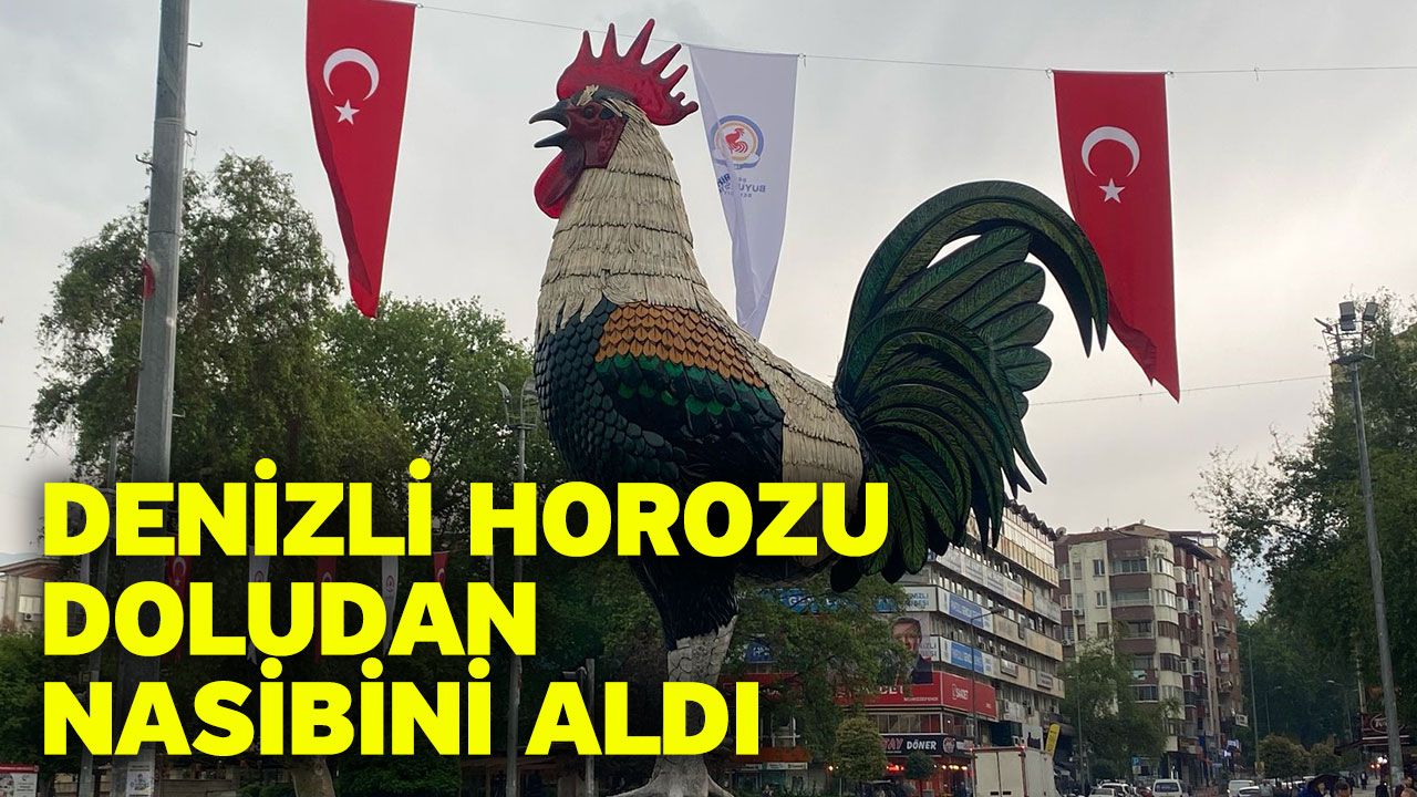 Günlük yaşamı olumsuz etkilemesinin yanı sıra meyve bahçelerinde ürün ve kalite kaybına neden olan şiddetli doludan Denizli'nin simgesi olan dev cam horoz heykeli de nasibini aldı. Büyükşehir belediyesi önündeki Delikliçınar Meydanında bulunan ve kaidesiyle birlikte 4.10 metre yüksekliyle Türkiye'nin en büyük cam heykeli unvanını taşıyan cam horoz şiddetli dolu yağışında hasar aldı. 7 bin cam parçasından oluşan cam horozun baş kısmındaki bölümler doluyla birlikte döküldü. Hasar oluşan horozu cep telefonuyla görüntüleyen vatandaşlar, "Dolu horozumuzu başından yaralamış gibi görünüyor" şeklinde yorum yaptı.