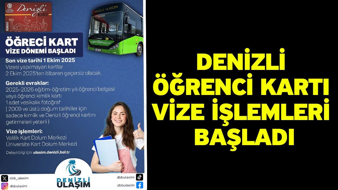 Denizli Haber - Denizli Büyükşehir Belediyesi tarafından sunulan ve şehir içi otobüs ulaşımında kullanılan “Denizli Öğrenci Kart” için vize dönemi başladı. Kart sahipleri işlemlerini 1 Ekim 2025 tarihine kadar yaptırması gerekiyor. Vizesi olmayan kartlar ise 2 Ekim 2025 tarihinden itibaren geçersiz sayılacak. Öğrencilerim mağduriyet yaşamaması için vize işlemlerinin mutlaka belirtilen süre içerisinde tamamlanması gerekiyor.
