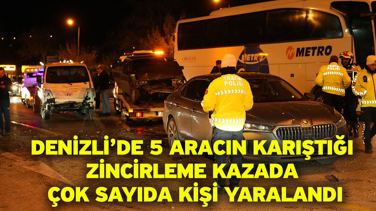 Denizli’de 5 aracın karıştığı zincirleme kaza sonucunda çok sayıda vatandaş yaralandı. Kazaya karışan araçlarda maddi hasar meydana gelirken, hastaneye kaldırılan vatandaşların sağlık durumunun iyi olduğu öğrenildi.