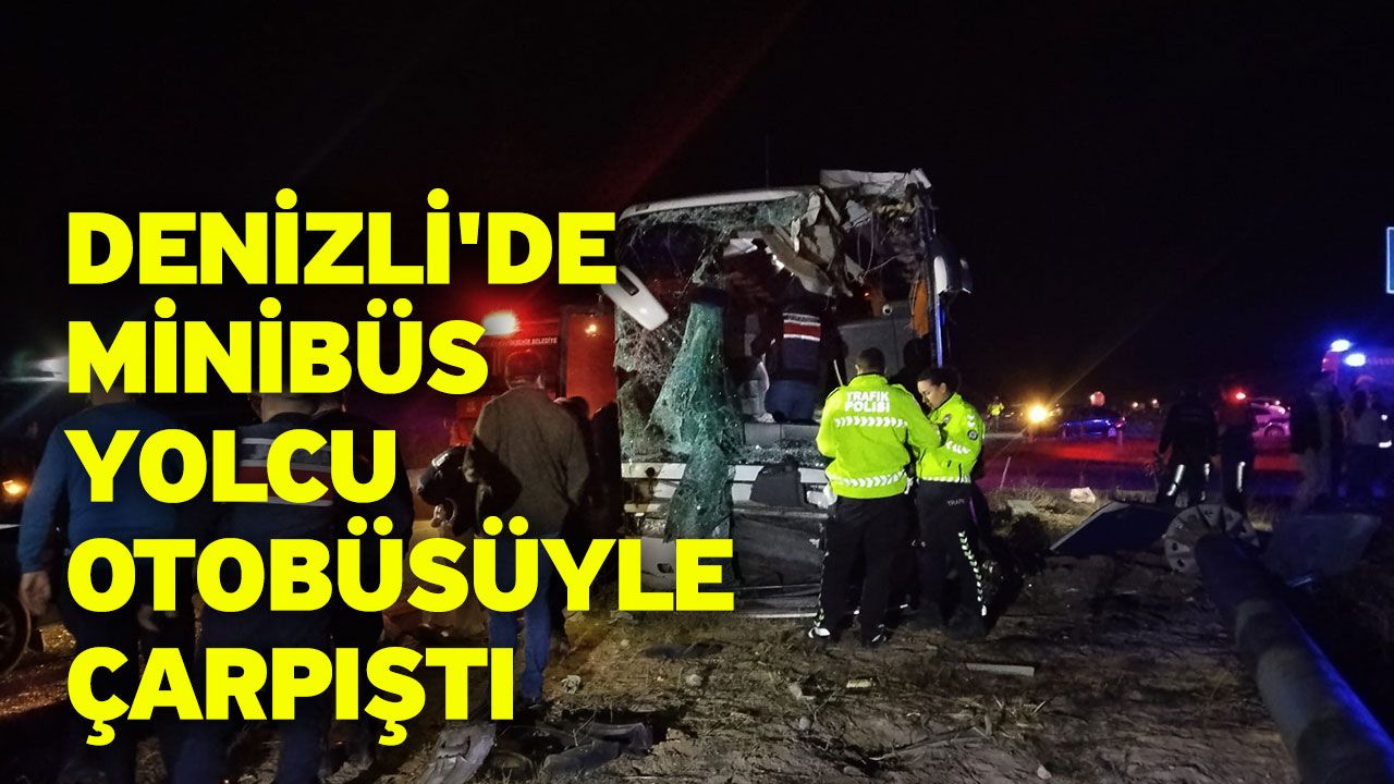 Denizli'de minibüs ile şehirlerarası yolcu otobüsü çarpıştı. Minibüsün devrildiği, otobüsün yoldan çıktığı kazada otobüs şoförü hayatını kaybederken, 13 kişi de yaralandı.