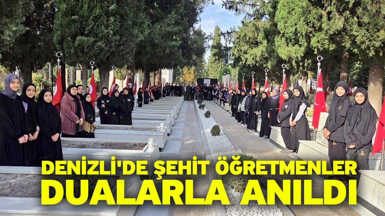 Denizli Haber - 24 Kasım Öğretmenler Günü dolayısıyla Denizli İl Milli Eğitim Müdürlüğü koordinasyonunda düzenlenen hatim duası, Bereketli İmam Hatip Ortaokulu ve Denizli Anadolu İmam Hatip Lisesi öğrencilerinin katılımıyla Denizli Şehitliği'nde gerçekleştirildi. Şehit öğretmenlerin yanı sıra vatan için canını feda eden tüm şehirler için okunan hatimlerin duası, sabah saatlerinde şehitlikte bir araya gelen öğrenci, öğretmen ve idarecilerin katılımıyla yapıldı. Programda, katılımcılar şehit kabirlerini ziyaret ederek karanfil bıraktı ve dua etti.