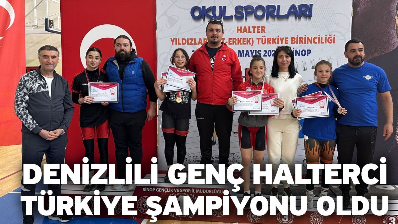 Sinop’ta düzenlenen Okul Sporları Halter Yıldızlar Türkiye Şampiyonası’nda Denizlili sporcu ortaokul öğrencisi Hayrunnisa Karaca, Koparma ve Silkme’de toplam 109 kilogram kaldırarak Türkiye Şampiyonu oldu.
