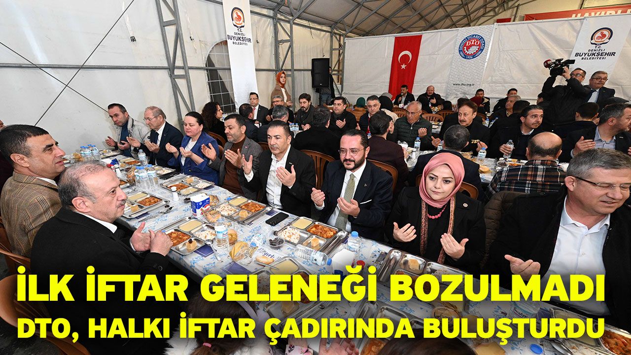 Denizli Haber - Denizli Ticaret Odası (DTO), geleneği bozmadı; Denizli Büyükşehir Belediyesi tarafından kurulan iftar çadırındaki ilk iftar yemeğini verdi. Geleneksel hale gelen ramazan ayının ilk günündeki iftar ile ilgili basın mensuplarının sorularını da yanıtlayan DTO Başkanı Uğur Erdoğan, “İlk günkü iftarımızı, vatandaşımızla bir arada yapmanın mutluluğunu yaşıyoruz. Bizi biz yapan gelenek ve göreneklerimiz; birbirimize sahip çıkmamız, her kesimden herkesle kucaklaşmamızdır. Biz hep beraber daha büyük ve daha güçlüyüz, daha mutluyuz. Denizli Ticaret Odamızın ramazanın ilk günü geleneksel hale getirdiği iftar yemeğinde bu sene de halkımızla aynı sofrada buluştuk. Gösterilen yoğun ilgiden dolayı teşekkür ediyoruz. Herkesin ramazan aynı kutluyor, hayırlara vesile olmasını diliyoruz” dedi.