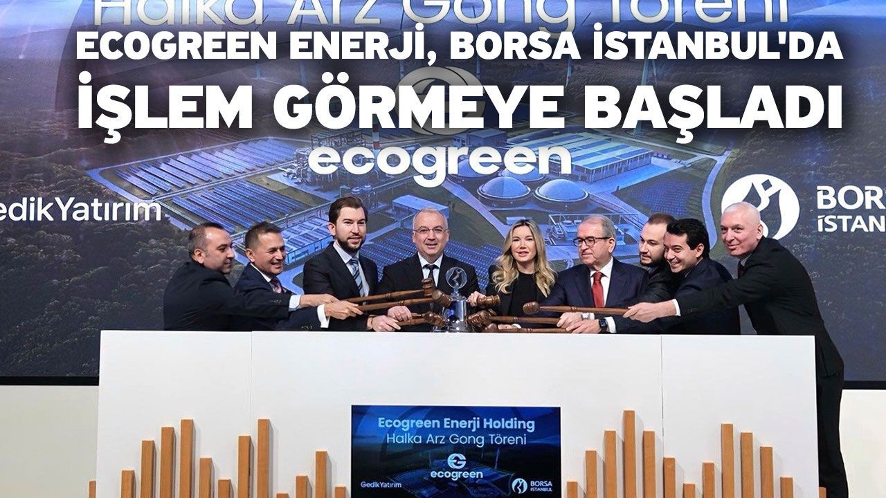 Denizli Haber - Yenilenebilir enerji sektöründeki yatırımlarıyla Türkiye'nin enerji dönüşümüne öncülük eden Ecogreen Enerji Holding A.Ş., Borsa İstanbul'da düzenlenen gong töreni ile sermaye piyasalarına adımını attı. Gedik Yatırım liderliğinde 22-23-24 Ekim 2025 tarihlerinde "Sabit Fiyatla Talep Toplama" yöntemiyle gerçekleşen talep toplama sürecini başarıyla tamamlayan şirket, bugün düzenlenen gong töreni ile birlikte ECOGR koduyla, Borsa İstanbul'da işlem görmeye başladı.