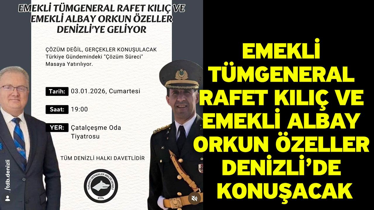 Denizli Haber - Emekli Tümgeneral Rafet Kılıç ile Emekli Albay Orkun Özeller, Türkiye gündeminde yer alan “Çözüm Süreci” başlığını ele almak üzere Denizli’ye geliyor.