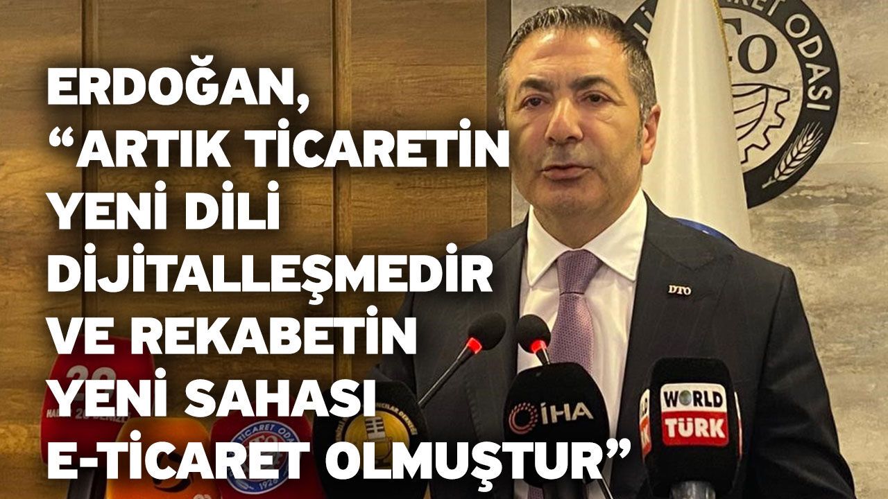 Türkiye’de e-ticaret hacminin son yıllarda büyük artış gösterdiğini belirten Erdoğan, resmi verilere göre 2024 yılında sektör hacminin yüzde 60’ın üzerinde artarak 3 trilyon liranın üzerine çıktığını, işlem sayısının ise 6 milyara ulaştığını ifade etti. 2025 yılı itibarıyla sektör büyüklüğünün 4,5 trilyon liraya yaklaşmasının beklendiğini kaydeden Erdoğan, "Artık ticaretin yeni dili dijitalleşmedir ve rekabetin yeni sahası e-ticaret olmuştur" dedi.