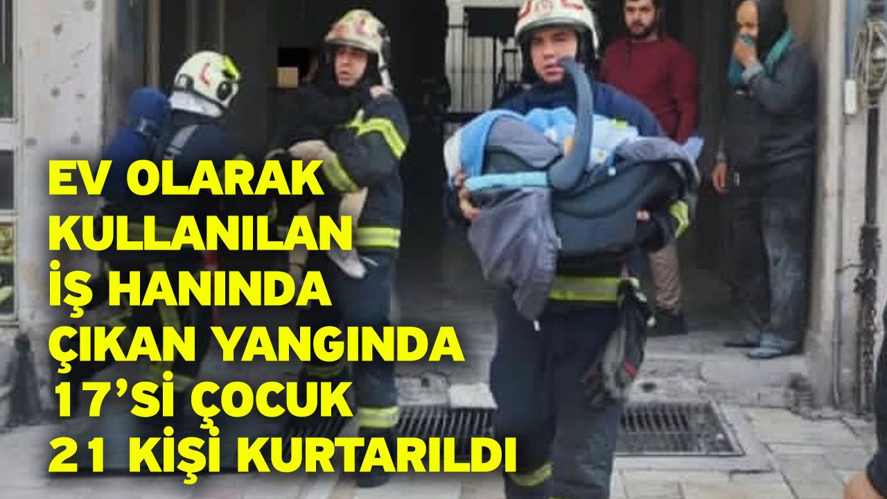 Ev olarak kullanılan iş hanında çıkan yangında 17’si çocuk 21 kişi kurtarıldı