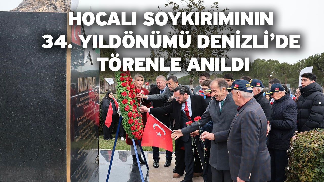 Denizli Haber - Tören, Azerbaycan-Karabağ Parkı’ndaki Hocalı Soykırımı Anıtı önünde gerçekleştirildi. Anma programına Denizli Büyükşehir Belediye Başkanı Bülent Nuri Çavuşoğlu, Merkezefendi Kaymakamı Abdullah Demir, Merkezefendi Belediye Başkanı Şeniz Doğan, siyasi parti ve sivil toplum örgütlerinin temsilcileri, gaziler, öğrenciler ve çok sayıda vatandaş katıldı. Program, Başkan Çavuşoğlu’nun Hocalı Soykırımı Anıtı’na çelenk sunmasıyla başladı. Ardından saygı duruşunda bulunuldu, Azerbaycan Milli Marşı ve İstiklal Marşı okundu.