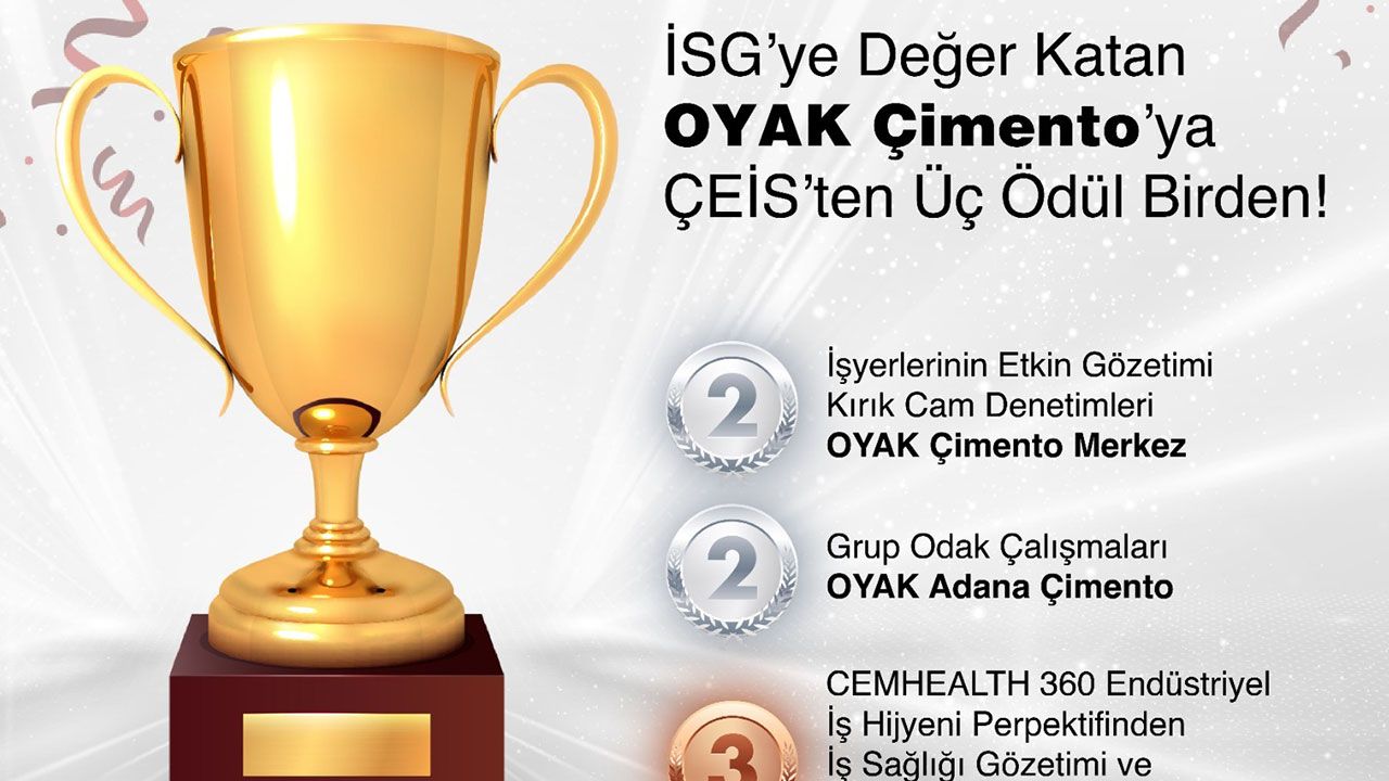 Denizli Haber - İş Sağlığı ve Güvenliğini kalıcı bir değer haline getirmek ve işyerlerinde sürekli birincil öncelik olmasını sağlamak amacıyla birçok çalışmayı hayata geçiren OYAK Çimento’nun üç projesi, ÇEİS İSG’ye Değer Katanlar Ödülleri 2025 kapsamında ödüle layık görüldü. Şirket, 14 farklı firmadan 2023 ve 2024 yıllarında hayata geçirilen toplam 91 projenin yarıştığı değerlendirme sonucunda "İş Güvenliğine Değer Katanlar", "Sağlığa Değer Katanlar" ve "İSG’ye Liderlik Yapanlar" kategorilerinin kazananı oldu. OYAK Çimento'nun ödül alan projeleri ve kategorileri şöyle: