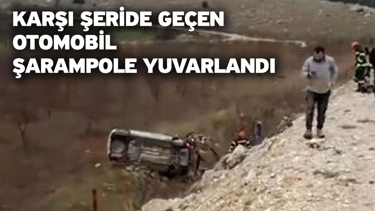 Karşı şeride geçen otomobil şarampole yuvarlandı