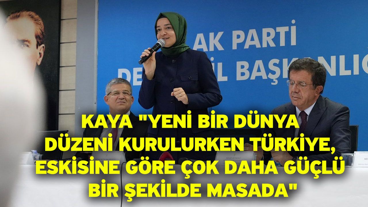 Dünyanın neresinde bir zulüm varsa, oradaki zulme karşı sesini yükselten ve mazlumlara el uzatan bir liderin yol arkadaşları olduklarını dile getiren Kaya, "Biz haktan ve adaletten yana tavrını ortaya koyan bir liderin yol arkadaşlarıyız. Dünyanın neresinde bir zulüm varsa, oradaki zulme karşı sesini yükselten ve mazlumlara el uzatan bir liderin yol arkadaşlarıyız. Zulümle abad olunmaz. Artık zalimlerin sesinin çok çıktığı dünya düzeni de yıkılmak zorunda. Yeni bir dünya düzeni kurulurken Türkiye, eskisine göre çok daha güçlü bir şekilde masada. Bu başarıda AK Parti teşkilatlarının, kadınların ve gençlerin payı çok büyük" dedi.