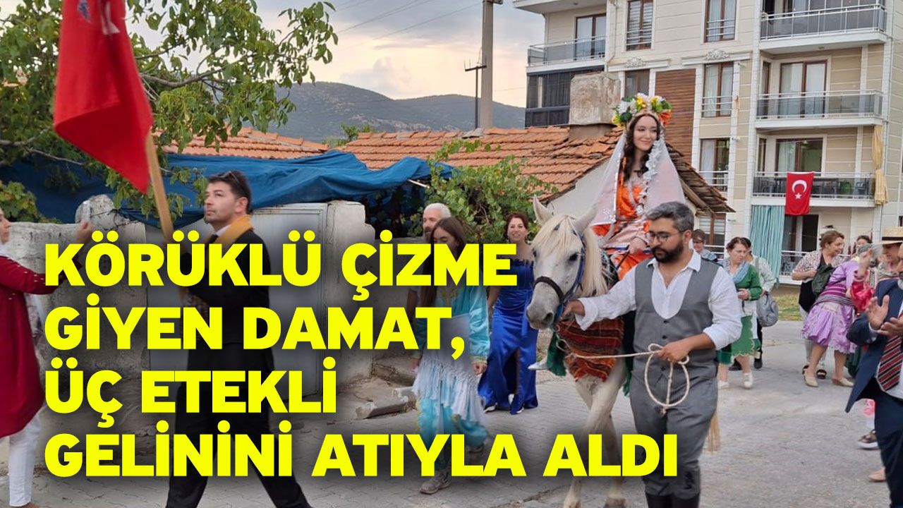 Denizli Haber - Denizli’nin Kale İlçesinde gerçekleşen geleneksel düğünde genç çift gelenekleri yaşattı. Gelin alayı ilk olarak damadın sağdıçlarını almak için yola çıktı. Davulla zurnayla alınan sağdıçlar damadın evine bir tepsi meşhur Kale baklavası ile geldi. Beyaz atına binen damat Fevzi Alperen Ersoy ve gelin alayı, davul zurna eşliğinde gelini almak için yola çıktı. İlçenin geleneksel üç etek isimli kıyafetini giyen gelin, oğlan evine geldi. Burada gelin Ceren Yılmaz testi oyununu oynadı ve testiyi kırdı.