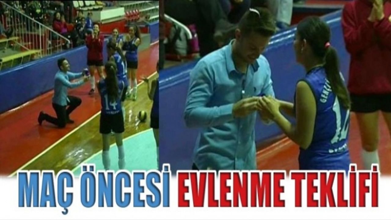 Denizli’de oynanan Kadınlar Voleybol 2'nci Ligi 3'üncü Grup'da; Denizli Gençlik Hizmetleri'nin evinde, Park Antalya Gençlik'e 3-2 yenildiği maçtan önce Beden Eğitimi öğretmeni Çağrı Kasap, Denizli temsilcisinde forma giyen sevgilisi Ayşe Kayhan'a sürpriz bir evlilik teklifi yaptı.