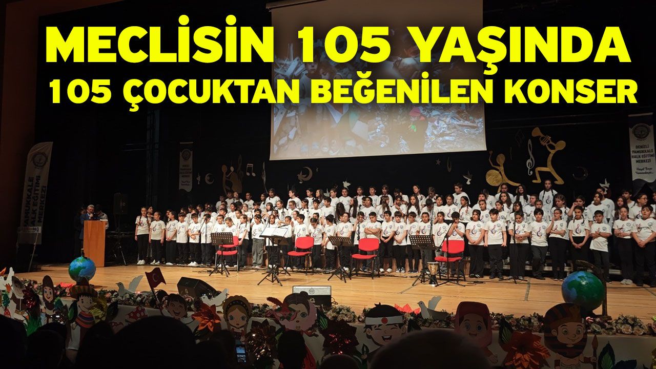 Denizli’de Türkiye Büyük Millet Meclisinin (TBMM) kuruluşunun 105. yıldönümü dolayısıyla oluşturulan 105 çocuğun görev altığı koronun verdiği konser beğeni topladı.