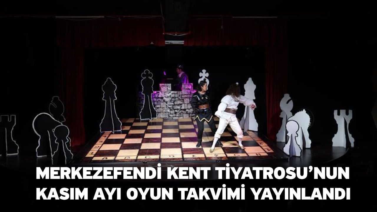 Merkezefendi Kent Tiyatrosu’nun, Kasım ayındaki oyun takvimi ise şöyle; Tiyatro ekibi ardından ‘Tembel Karınca ve Kıpır’ oyununu 7 Kasım Cuma günü saat 10.30 ve 11.30’da Merkezefendi Kültür Merkezi’nde, ‘Mızmız ve Boncuk Macera Peşinde’ oyununu 12 Kasım Çarşamba günü saat 14.30’da Yüzüncü Yıl Gençlik Merkezi’nde, ‘Tembel Karınca Kıpır’ oyununu 13 Kasım Perşembe günü saat 14.30’da Merkez Kütüphane’de, ‘Piyonlar’ oyununu 14 Kasım Cuma günü saat 14.30’da Merkezefendi Kültür Merkezi’nde, ‘Yasaklar’ oyununu 14 Kasım Cuma günü saat 20.00’de Merkezefendi Kültür Merkezi’nde, ‘Mızmız ve Boncuk Macera Peşinde’ oyununu 19 Kasım Çarşamba günü saat 10.30’da Yüzüncü Yıl Gençlik Merkezi’nde, ‘Tembel Karınca Kıpır’ oyununu 21 Kasım Cuma Günü saat 10.30’da Merkez Kütüphane’de, ‘Bir Evlenme Teklifi-Ayı’ oyununu 26 Kasım Çarşamba günü saat 20.00’de Merkezefendi Kültür Merkezi’nde, ‘Mızmız ve Boncuk Macera Peşinde’ oyununu 28 Kasım Cuma günü saat 10.30’da Yüzüncü Yıl Gençlik Merkezi’nde gerçekleştirilecek.