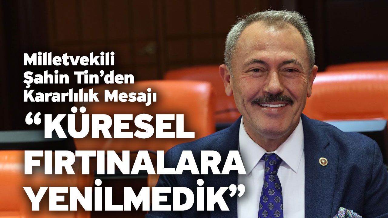 2026 yılına ilişkin kararlılık mesajı veren Milletvekili Şahin Tin; “Türkiye Yüzyılı, güçlü devlet, güçlü millet ve güçlü gelecek vizyonumuzun adıdır. Karşılaştığımız her zorluğu sabır, birlik ve kararlılıkla aşan; elde edilen kazanımları kalıcı hâle getiren bir iradeyle yolumuza emin adımlarla devam ediyoruz. 2026 yılının; büyümenin, istikrarın, kardeşliğin, dayanışmanın ve huzurun pekiştiği, dünya coğrafyasındaki mazlumların yüzünün güldüğü bir yıl olmasını temenni ediyorum. Yeni takvim yılının ülkemiz, aziz milletimiz ve tüm insanlık için hayırlara vesile olmasını diliyorum” dedi.