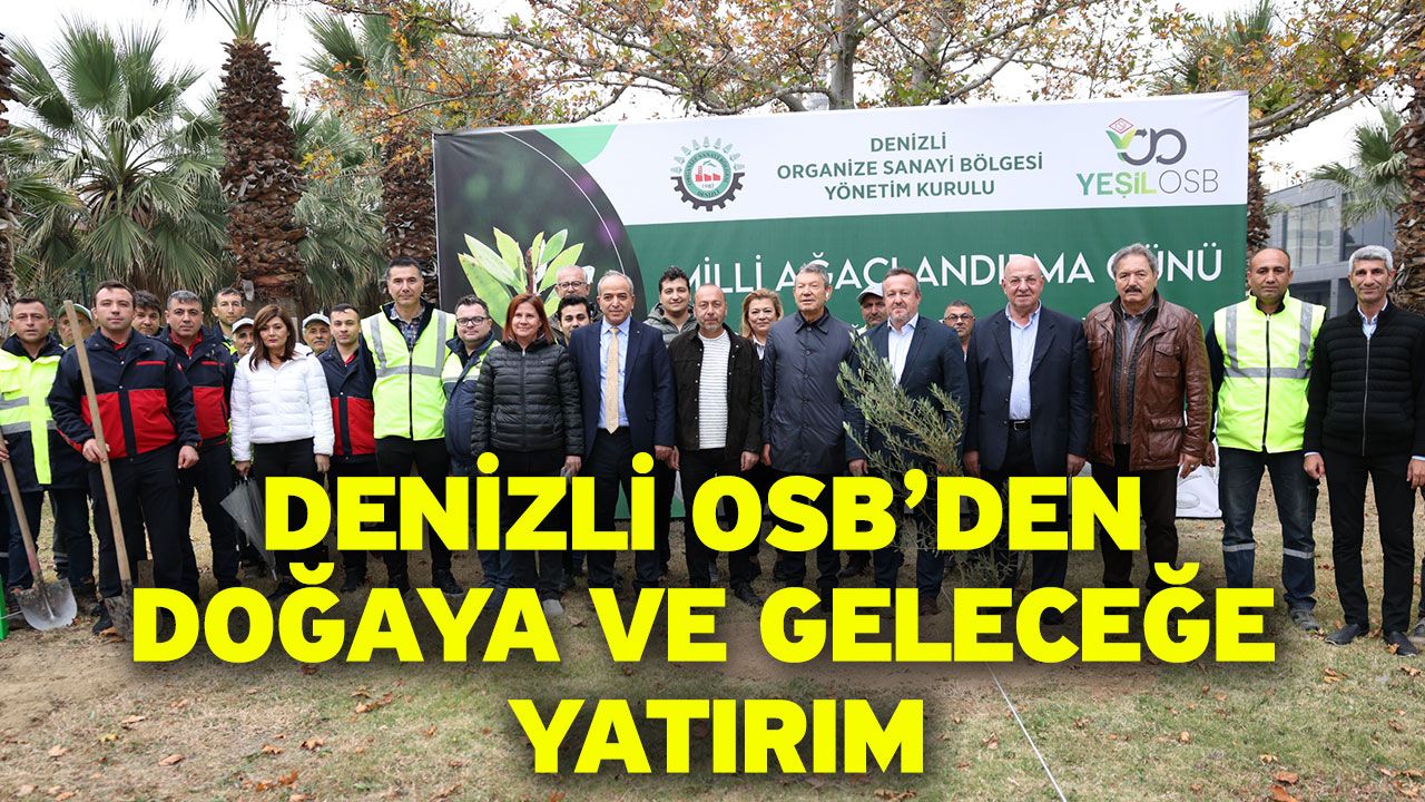 Denizli Haber - Denizli Organize Sanayi Bölgesi Müdürlüğü, 11 Kasım Milli Ağaçlandırma Günü kapsamında çevreye duyarlı sanayi anlayışını yansıtan anlamlı bir etkinlik gerçekleştirdi. Denizli OSB Yönetim Kurulu Başkanı Derya Baltalı, Yönetim Kurulu Başkan Vekili Selim Yaymanoğlu, Yönetim Kurulu Üyeleri Mehmet Çalışkan ve İsmail Aslan ile Bölge Müdürlüğü personelinin katılımıyla düzenlenen fidan dikim etkinliğinde, doğaya ve geleceğe nefes olacak yeni fidanlar toprakla buluşturuldu.