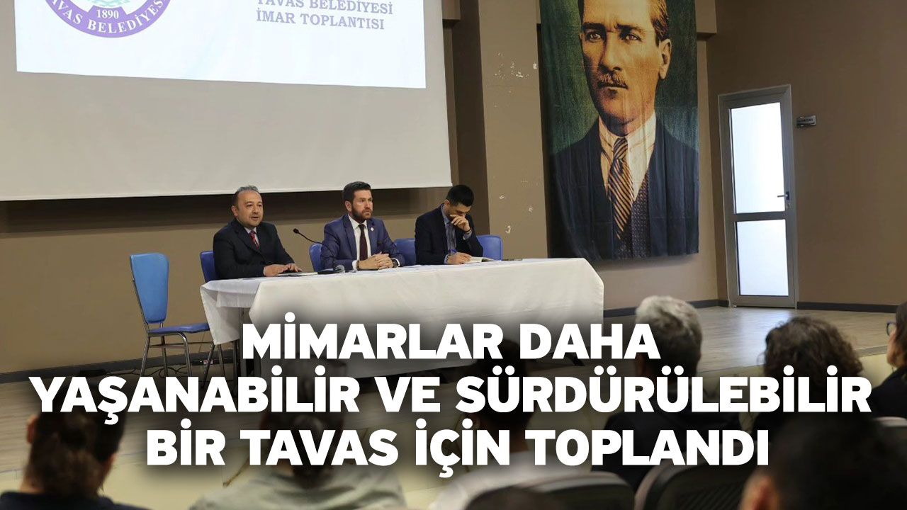Denizli Haber - Tavas imar planının günümüz ihtiyaçlarını karşılamadığı ve birçok alanda uygulanamaz hale geldiği için, daha yaşanabilir ve sürdürülebilir bir Tavas için yeni bir yol haritası oluşturmak amacıyla Tavas Belediyesi tarafından toplantı düzenledi. Toplantıya, Tavas Belediye Başkanı Kadir Tatık, Şehir Plancıları Odası Muğla Şubesi 2’ci Başkanı Ömer Girgin, Mimarlar Odası Denizli Şube Başkanı Özlem Kabel, Harita ve Kadastro Mühendisleri Odası Denizli Temsilcisi Osman Keysan, TMMOB Denizli Dönem Sekreteri Mehmet Öztürk, mimarlar, İnşaat mühendisleri ve müteahhitler katıldı.