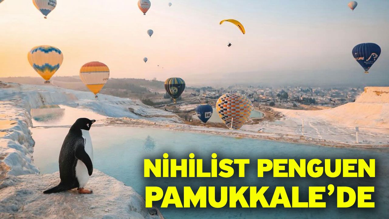 Akıma kayıtsız kalmayan Denizli İl Kültür ve Turizm Müdürlüğü, Pamukkale travertenleri fonunda hazırlanan dikkat çekici bir görseli sosyal medya hesabından paylaştı. Balonlar eşliğinde Pamukkale manzarasını izleyen penguen görseliyle yapılan paylaşımda,