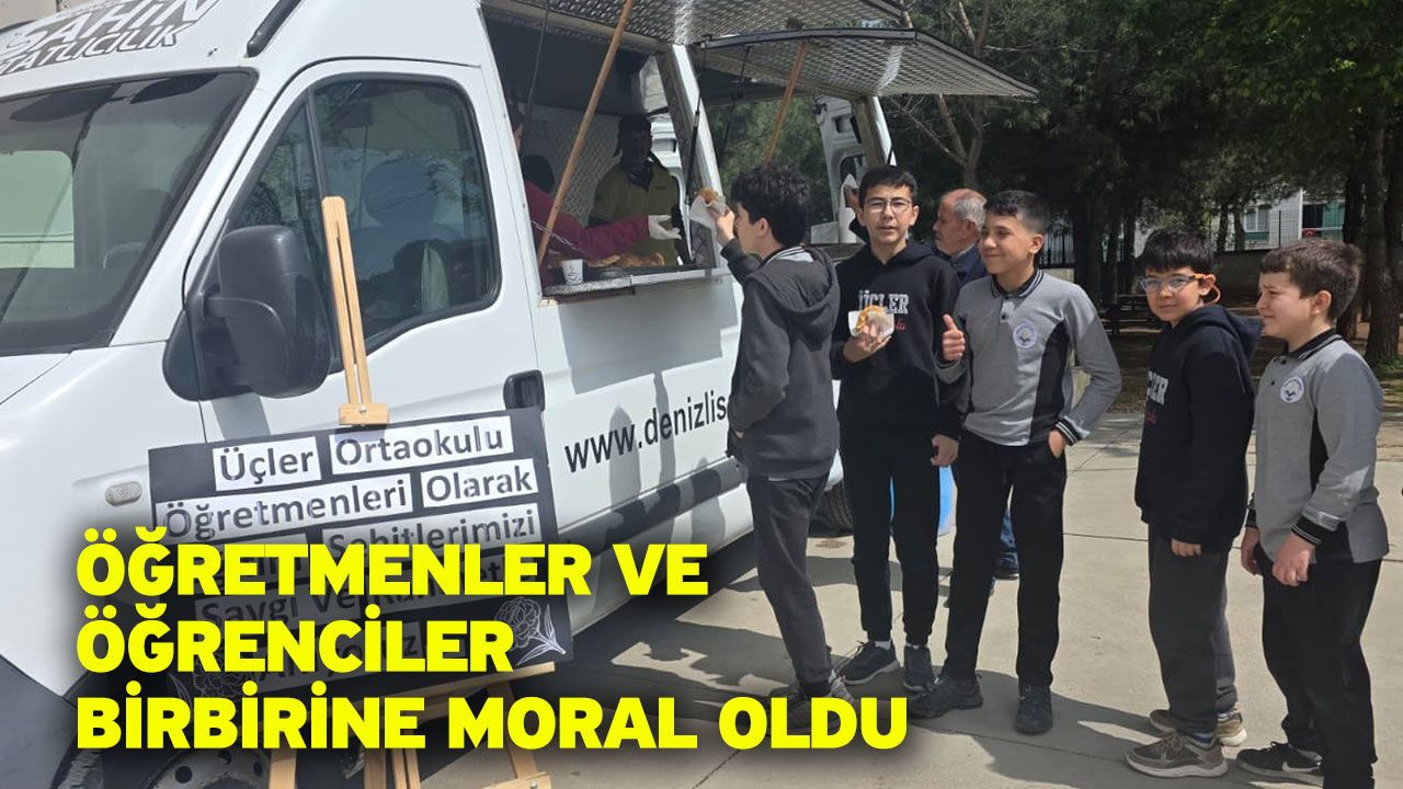 Denizli Haber - Denizli’nin Merkezefendi ilçesi Karahasanlı Mahallesi’nde bulunan Üçler Ortaokulu öğretmenleri tarafından eğitim şehitlerini anmak amacıyla gerçekleştirilen lokma hayrı, duygu dolu anlara sahne oldu. Süreç içerisinde motivasyon desteğine ihtiyaç duyan öğretmenlerine sürpriz yapan öğrenciler hazırladıkları pankartlar, çiçekler ve hediyelerle öğretmenlerine moral verdi. Öğrencilerin jestleri öğretmenlerin yüzünü güldürerek moral kaynağı oldu. Öğrencilerin bu vefalı yaklaşımına karşılık veren okul yönetimi ve öğretmenler, günün anısına dondurma ikramında bulundu. Karşılıklı sevgi ve dayanışma gösterilerinin yaşandığı etkinlik, okul iklimine sunduğu olumlu katkıyla takdir topladı.
