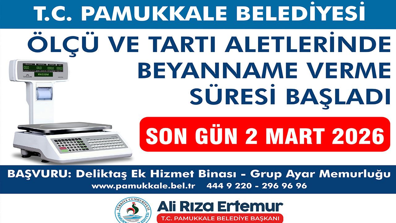 Denizli Haber - Pamukkale Belediyesi tarafından, ilçe genelinde faaliyet gösteren esnaflara, ölçü ve tartı aletlerinin periyodik muayene ve damga işlemlerinin süresi hakkında önemli bir hatırlatma yapıldı. Pamukkale Belediyesi’nce yapılan açıklamada; ilçe sınırları içerisinde yer alan açık ve kapalı pazaryerlerinde kullanılan masa terazileri, asma teraziler, tek kollu kantarlar, ibreli teraziler ve elektronik tartı aletlerinin tamamının periyodik muayeneye tabi olduğu hatırlatıldı. Damga süresi dolmuş olan ölçü ve tartı aletleri için kullanıcı esnafların, Pamukkale Belediyesi Deliktaş Ek Hizmet Binası’nda bulunan Grup Ölçü ve Ayar Memurluğu’na başvurarak, muayene ve damga günü alması gerektiği kaydedildi. Belediye yetkilileri, 2026 yılında damgalanacak ölçü ve tartı aletleri için son başvuru tarihinin 2 Mart 2026 olduğunu bir kez daha hatırlatarak, esnafların mağduriyet yaşamamaları adına müracaatlarını son güne bırakmamaları çağrısında bulundu.