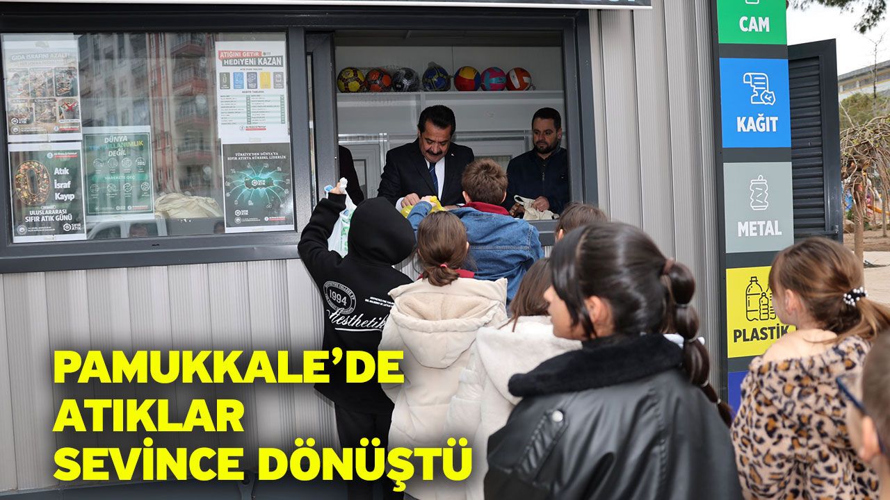 Evlerinde ve okullarında titizlikle biriktirdikleri atıklarla merkeze gelen minik çevrecileri, Pamukkale Belediye Başkanı Ali Rıza Ertemur karşıladı. “Atığını Getir, Hediyeni Kazan” sloganıyla hayata geçirilen sistemde öğrenciler, teslim ettikleri atıklar karşılığında puan topladı. Biriken puanlar; futbol toplarından Jenga setlerine, oyuncaklardan çeşitli kırtasiye ürünlerine kadar pek çok hediyeye dönüştü. Hediyelerini bizzat Başkan Ertemur’un elinden alan çocukların mutluluğu, sıfır atık bilincinin en güzel meyvesi oldu.