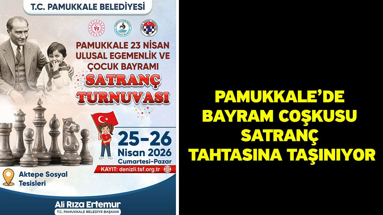 Denizli Haber - Pamukkale Belediyesi, 23 Nisan Ulusal Egemenlik ve Çocuk Bayramı’nın coşkusunu spor ve zekâ dolu bir organizasyonla kutlamaya hazırlanıyor. Denizli Gençlik ve Spor İl Müdürlüğü iş birliğiyle düzenlenen “Pamukkale 23 Nisan Ulusal Egemenlik ve Çocuk Bayramı Satranç Turnuvası”, kentin genç yeteneklerini Aktepe Sosyal Tesisleri’nde bir araya getirecek. 25-26 Nisan 2026 tarihlerinde gerçekleşecek olan bu anlamlı turnuva, bayram sevincini rekabet ve stratejiyle birleştirecek.