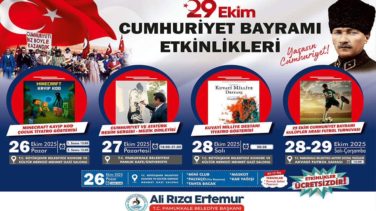 Denizli Haber - Pamukkale Belediyesi, 29 Ekim Cumhuriyet Bayramı dolayısıyla hazırladığı dört günlük özel programla, Cumhuriyet bilincini eğlenceli, sanatsal ve öğretici yollarla tüm ilçe sakinlerine aşılamayı hedefliyor.