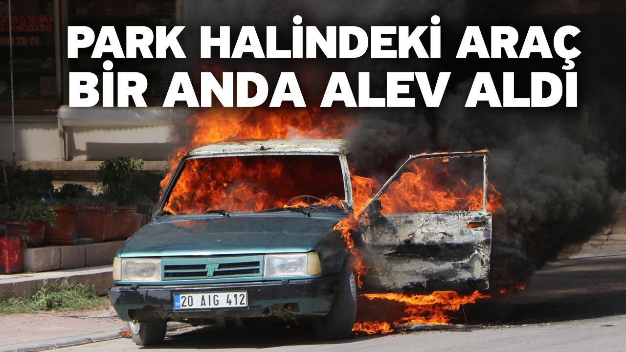 Denizli’de, sürçünün kısa süre önce park ettiği araç bir anda alev aldı. İlk müdahaleyi esnafların yaptığın yangında araç, demir yığınına dönerken döndü.