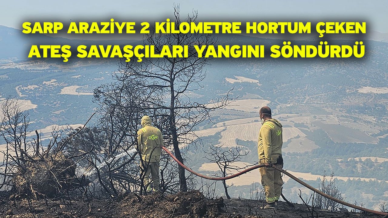 Sarp araziye 2 kilometre hortum çeken ateş savaşçıları yangını söndürdü