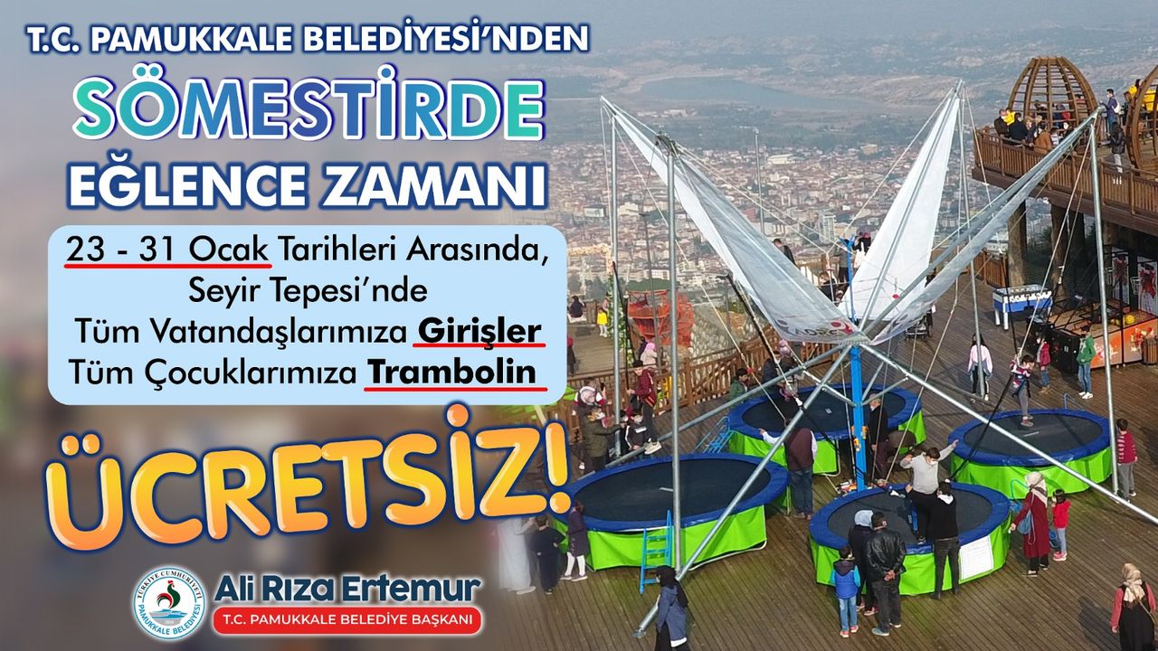 Eğitime ve sosyal aktivitelere her zaman destek verdiklerini belirten Pamukkale Belediye Başkanı Ali Rıza Ertemur, yaptığı açıklamada şunları kaydetti: “Yoğun bir ders dönemini geride bırakan evlatlarımızın tatil neşesine ortak olmak istedik. Seyir Tepesi, hem eşsiz manzarasıyla hem de sunduğu sosyal imkanlarla şehrimizin nefes alma noktası. Bu sömestirde tüm hemşehrilerimizi, özellikle de çocuklarımızı ücretsiz giriş ve trambolin etkinliğimizle Seyir Tepesi’ne davet ediyorum. Amacımız, çocuklarımızın yüzünde bir tebessüm oluşturmak ve onlara unutulmaz bir tatil anısı bırakmak.”