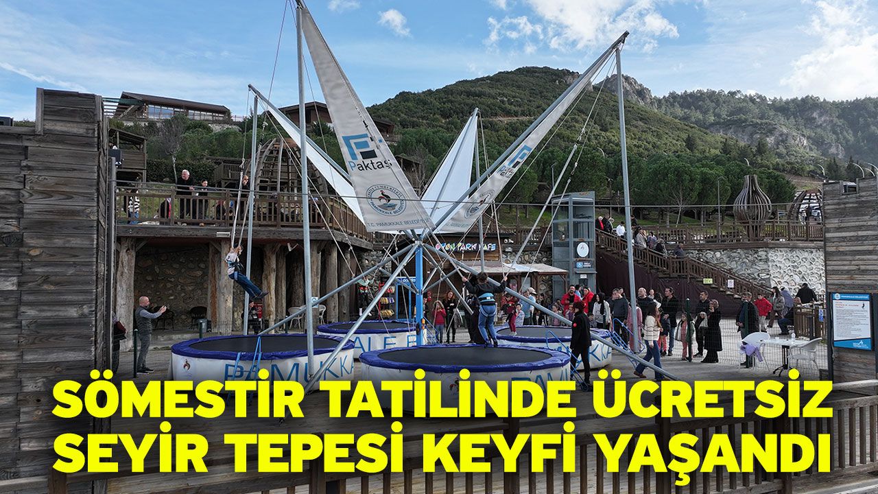 Denizli Haber - Eğitime ve sosyal belediyeciliğe her fırsatta vurgu yapan Pamukkale Belediyesi, sömestir tatili boyunca Seyir Tepesi’nin kapılarını tüm vatandaşlara ücretsiz olarak açtı. Özellikle öğrenciler için hazırlanan ücretsiz trambolin etkinliği, minik misafirlerin tatil heyecanını ikiye katladı. Tatil boyunca dolup taşan tesislerde vatandaşlar, doğa ile iç içe bir ortamda keyifli vakit geçirme imkanı buldu.