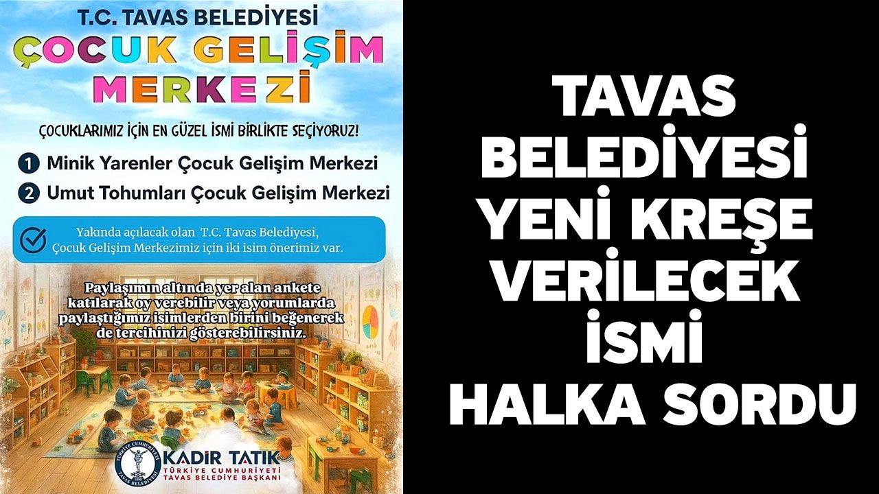 Tavas Belediyesi tarafından yakın zamanda hizmete açılacak olan Çocuk Gelişim Merkezi için isim düşünülüyor. 2 iki isim arasında kalan belediye, ismi belirlemek için oylama anketi başlattı.