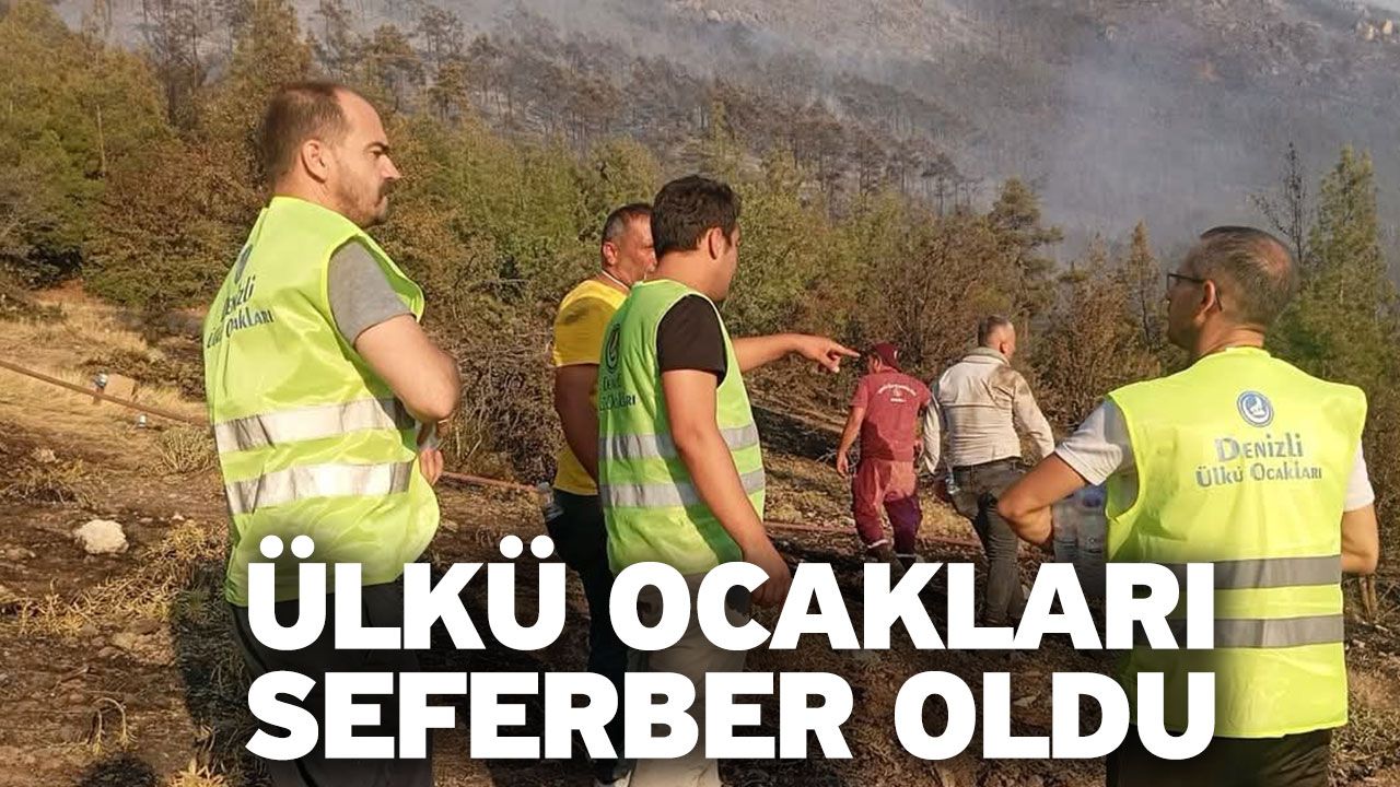 Denizli Haber - Ülkü Ocakları Denizli İl Başkanı Özgür Solak’ın başkanlığında yangının başlamasıyla birlikte toplanan Ülkücüler, yangının söndürülmesi, yangına müdahale ekiplerine yardımcı olunması konusunda seferber oldu. Ülkücüler, yangın bölgesine içecek, konserve, medikal destek ve koruyucu malzemeler ulaştırdı.