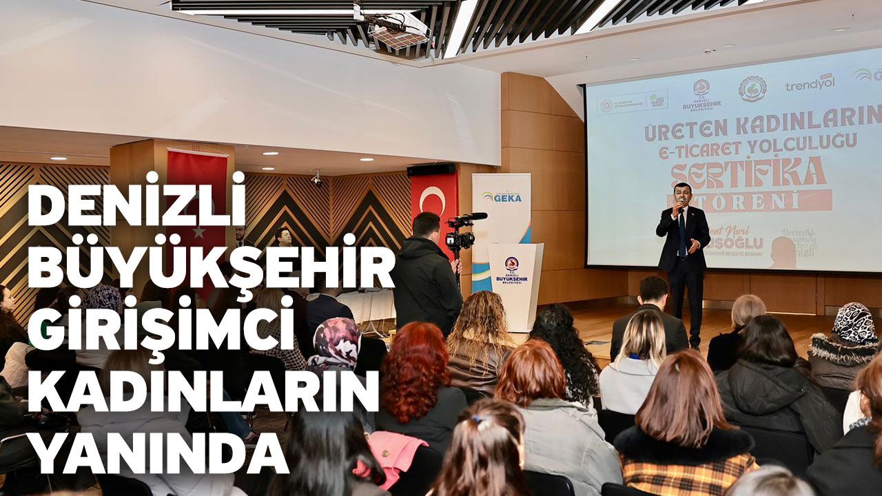 Denizli Haber - Denizli Büyükşehir Belediyesi Kent Konseyi’nin Pamukkale Üniversitesi, Güney Ege Kalkınma Ajansı (GEKA) ve Trendyol iş birliğiyle gerçekleştirilen proje kapsamında; girişimcilik, markalaşma, e-ticaret, e-ihracat, ihracat-ithalat ve ürün fotoğrafçılığı başlıklarında kapsamlı eğitimler verildi. Ekim ve Kasım aylarında toplam altı gün süren eğitim programı, kadın girişimcilerin dijital ticaret alanında bilgi ve yetkinliklerini artırmayı hedefledi. Eğitimleri başarıyla tamamlayan katılımcılar için Denizli Büyükşehir Belediyesi Kongre ve Kültür Merkezi’nde sertifika töreni düzenlendi. Törene Denizli Büyükşehir Belediye Başkanı Bülent Nuri Çavuşoğlu, Kent Konseyi Başkanı Ali Marım, Kent Konseyi Genel Sekreteri Baran Akın ve sertifika almaya hak kazanan kadınlar katıldı.