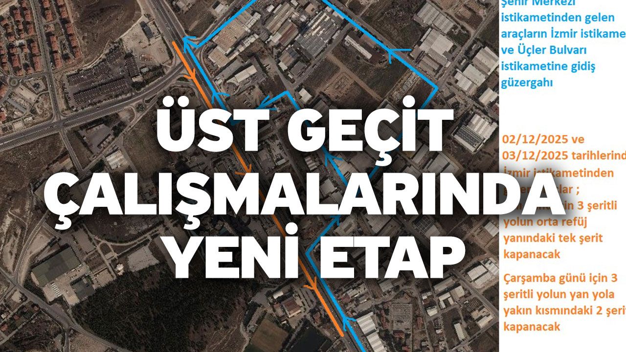 Denizli Haber - Denizli–Aydın yolu Menderes Bulvarı üzerinde Sinpaş Aquamall önünde gerçekleştirilecek yaya üst geçidi imalat çalışmaları nedeniyle bulvar, 1 Aralık Pazartesi günü sabah saatlerinden akşam saatlerine kadar Şehir Merkezi–Aydın istikametinde tamamen trafiğe kapatılacak. 2-3 Aralık tarihlerinde ise Aydın–Şehir Merkezi yönünde sabah saatlerinden akşam saatlerine kadar kontrollü şerit daraltma uygulaması yapılacak. Çalışmalar süresince sürücüler için alternatif güzergâhlar belirlenirken, bölgede bulunan yönlendirme tabelalarına uyulması gerektiği önemle vurgulandı.